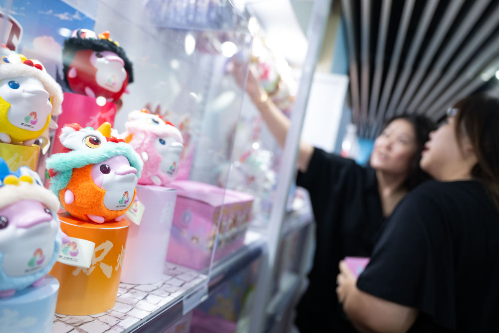 ↑8月1日,市民在十五运会和残特奥会澳门赛区官方特许商品零售店选购。新华社发(张金加 摄)