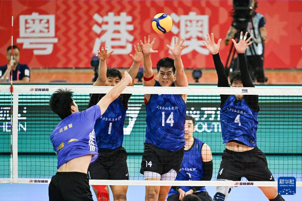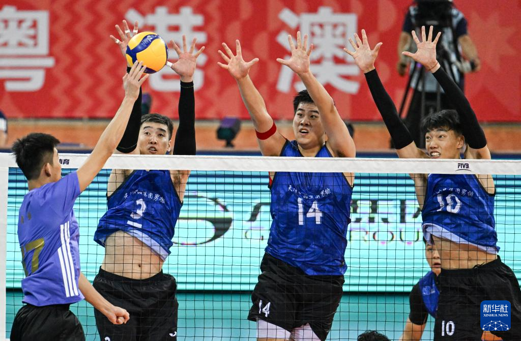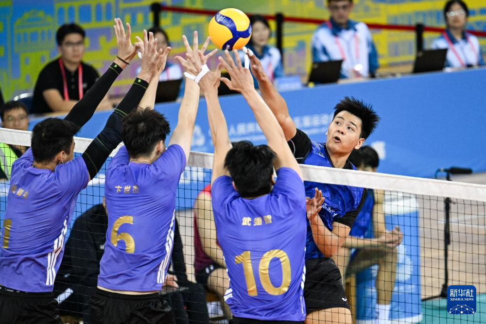 当日,在广东江门举行的第十五届全国运动会排球男子成年组小组赛A组比赛中,上海队3比2战胜天津队。
