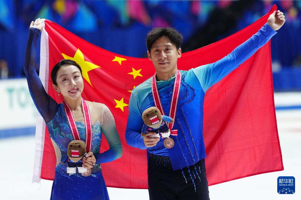 当日,2025年世界花样滑冰大奖赛日本站双人滑自由滑比赛在日本大阪举行。中国选手隋文静/韩聪获得双人滑季军。