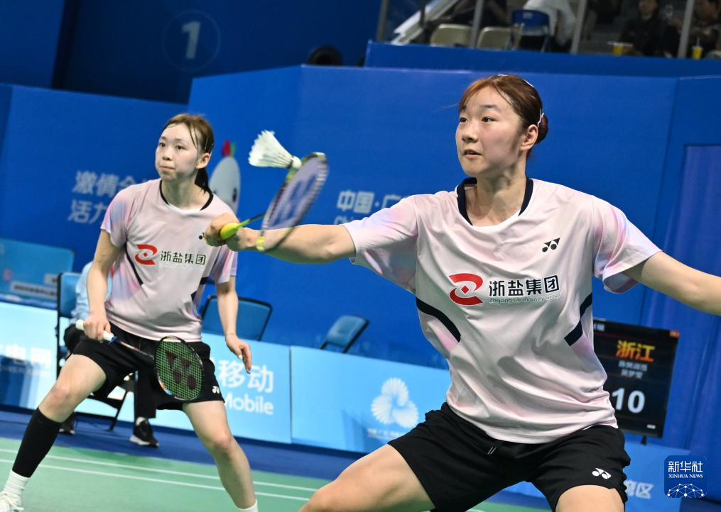 11月9日,浙江队组合陈樊淑湉(右)/吴梦莹在双打比赛中。她们1比2不敌湖北队组合杜玥/李汶妹。