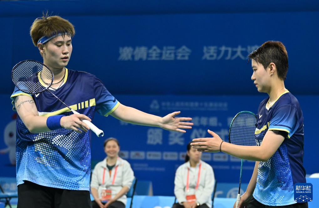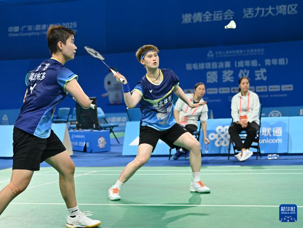 11月9日,湖北队组合杜玥(左)/李汶妹在双打比赛中。她们2比1战胜浙江队组合陈樊淑湉/吴梦莹。