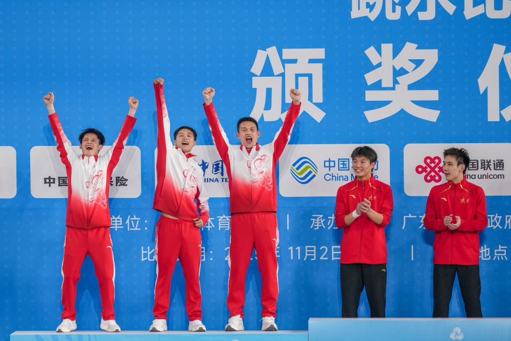 陈艾森所说的“最后一个关卡”,是男子团体双人10米台。他和朱子锋组成的“老带新”组合顶住了压力,拿下该项目第一,助广东队斩获全运跳水男团“八连冠”。