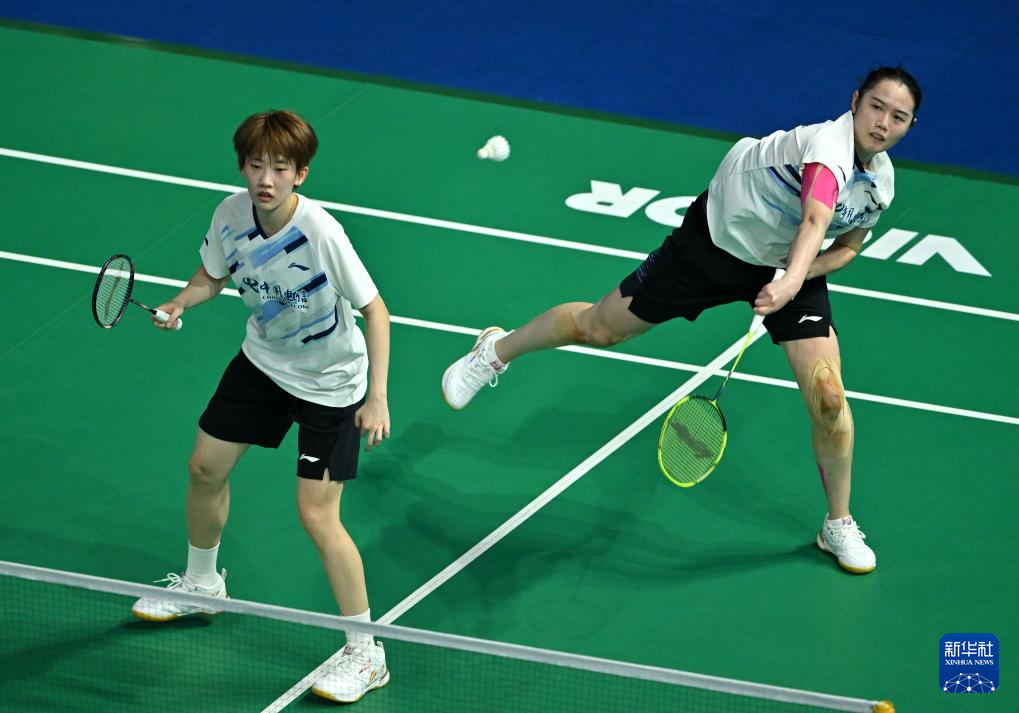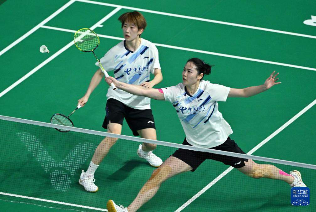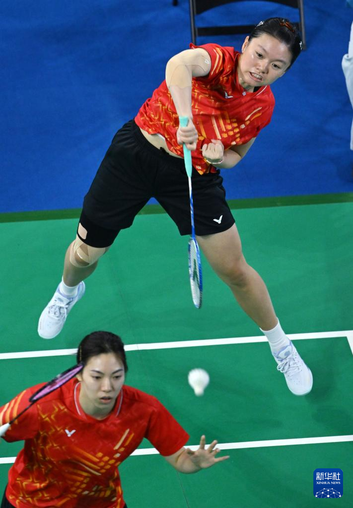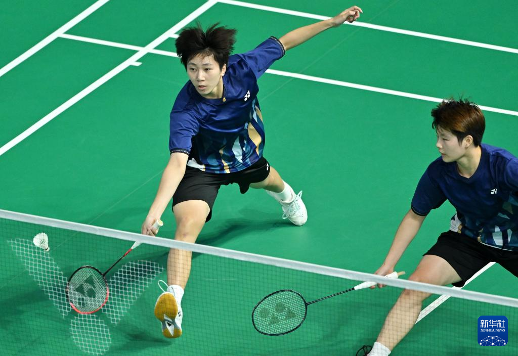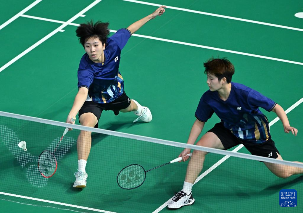 11月8日,四川队组合郑雨(右)/张殊贤在女双比赛中回球。她们2比0战胜江西队组合张梦云/常育宁。最终,四川队3比2战胜江西队。
