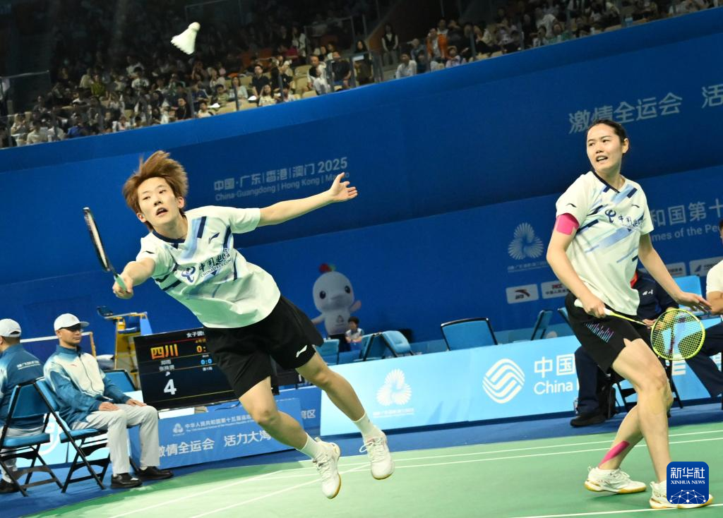 当日,第十五届全国运动会羽毛球女子团体小组赛继续在深圳举行。