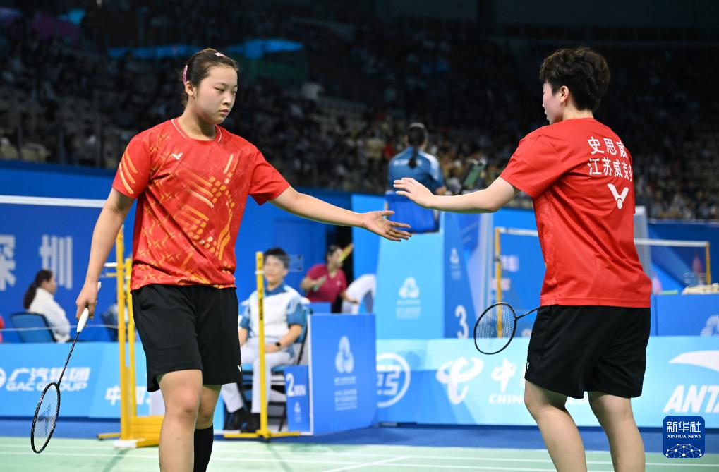 当日,第十五届全国运动会羽毛球18岁以下女子团体四分之一决赛在广东省深圳市举行。