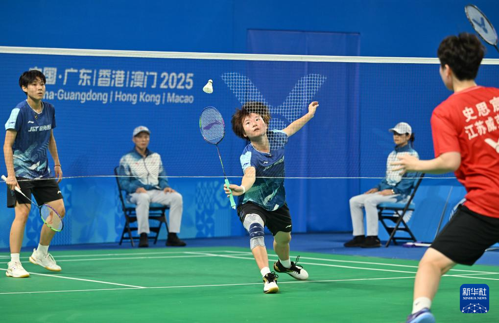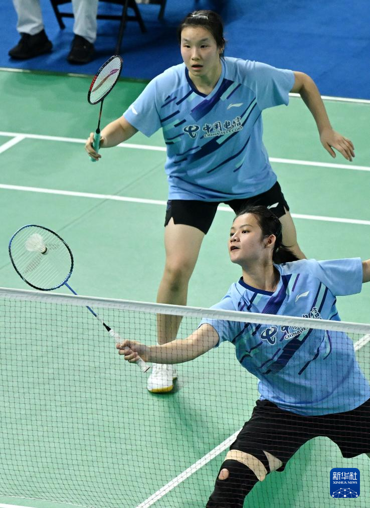 11月8日,江苏队组合秦添悦(左)/史思宸在女双比赛中。她们以2比0战胜辽宁队组合徐佳妮/原馨懿。最终,江苏队3比0战胜辽宁队,晋级下一轮比赛。