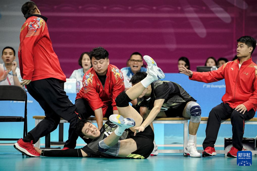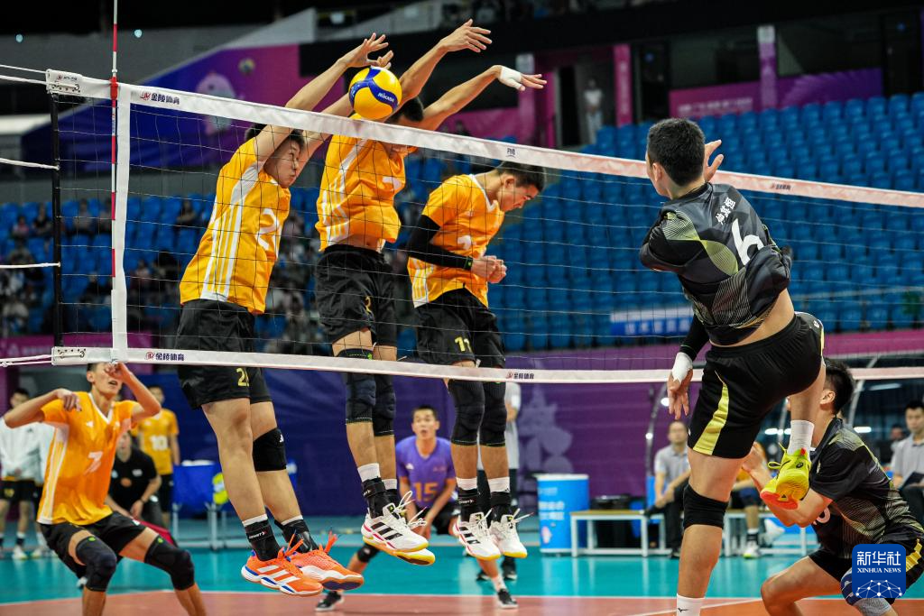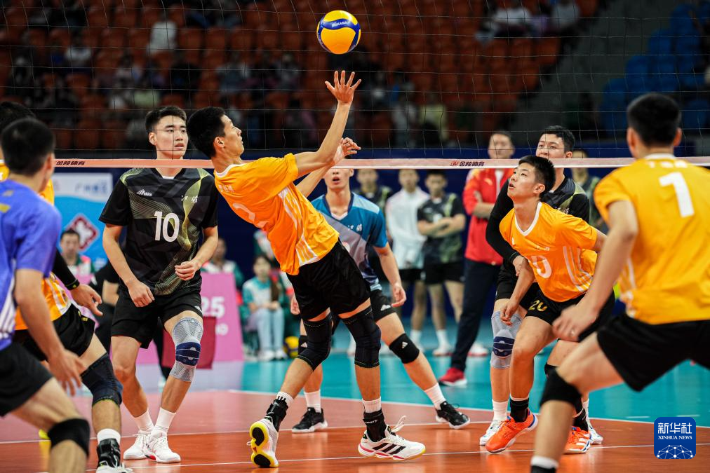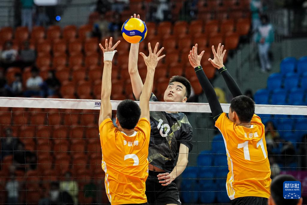 当日,在广州进行的第十五届全国运动会排球男子18岁以下组小组赛A组比赛中,江苏队3比1战胜上海队。