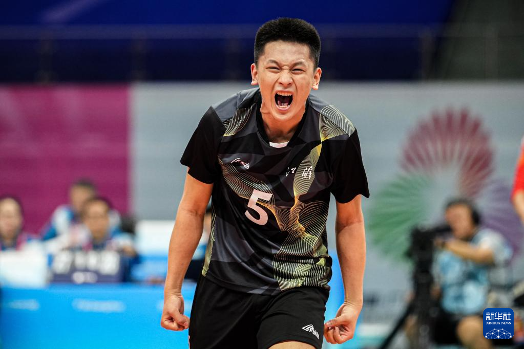 11月8日,江苏队球员刘家诚在比赛中庆祝得分。