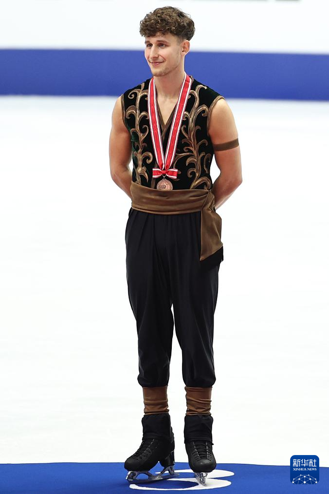11月8日,瑞士选手布里奇吉在男子单人滑颁奖仪式上。他获得男子单人滑季军。