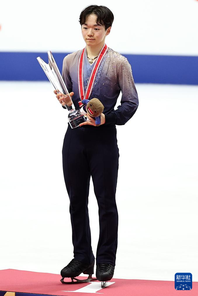 11月8日,日本选手键山优真在男子单人滑颁奖仪式上。他获得男子单人滑冠军。
