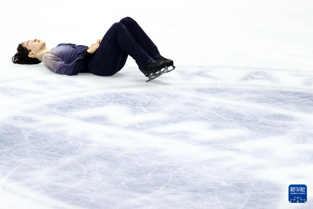 11月8日,日本选手键山优真在比赛后躺在冰面上。最终,他获得男子单人滑冠军。