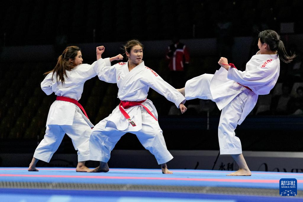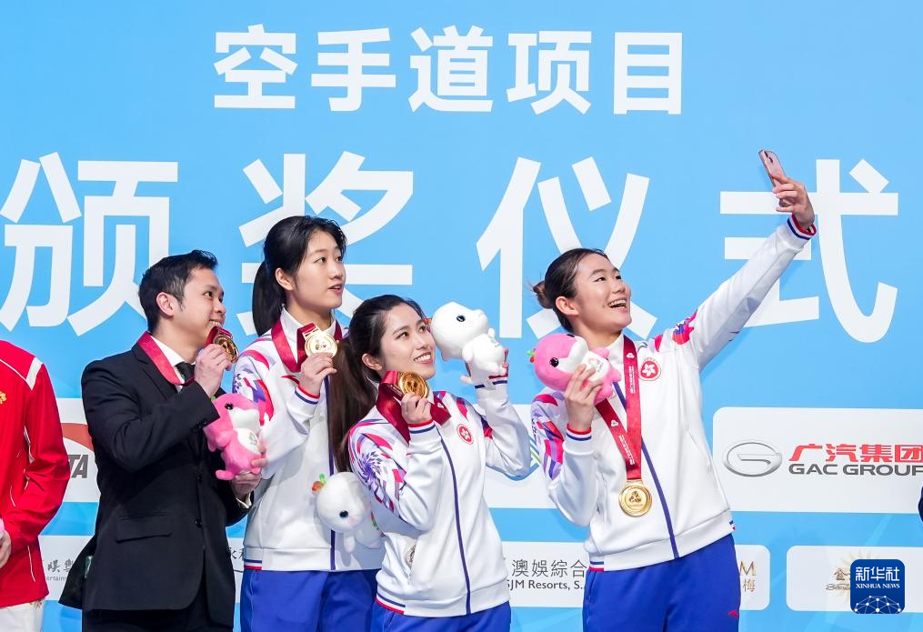 当日,在澳门举行的第十五届全国运动会群众比赛空手道女子团体型决赛中,香港队战胜河南队,夺得冠军。