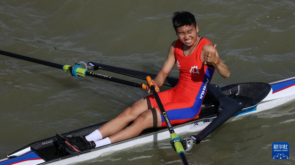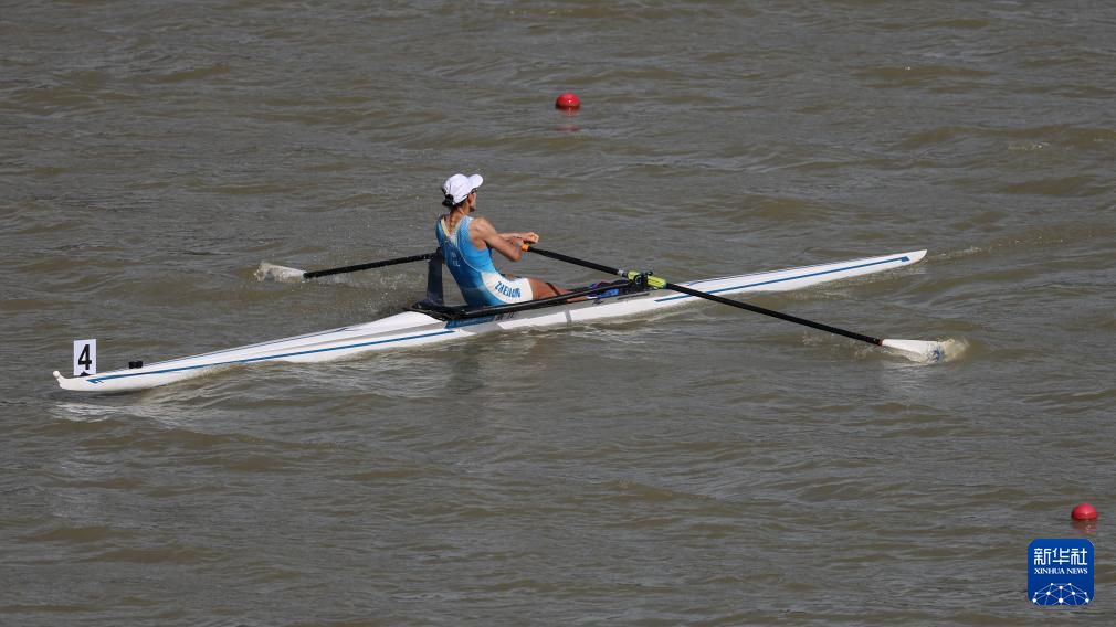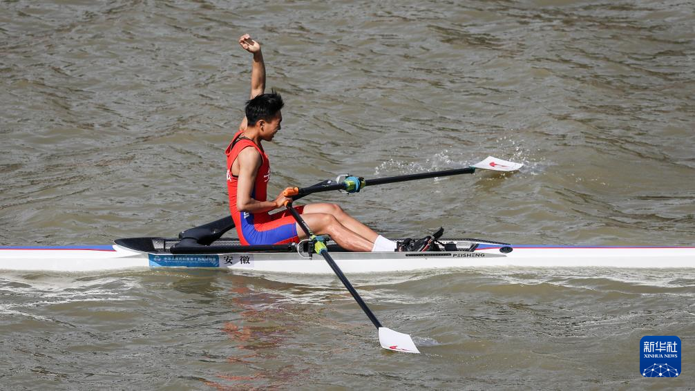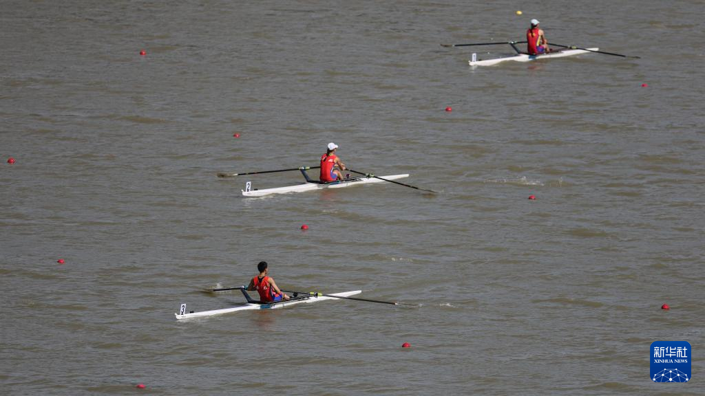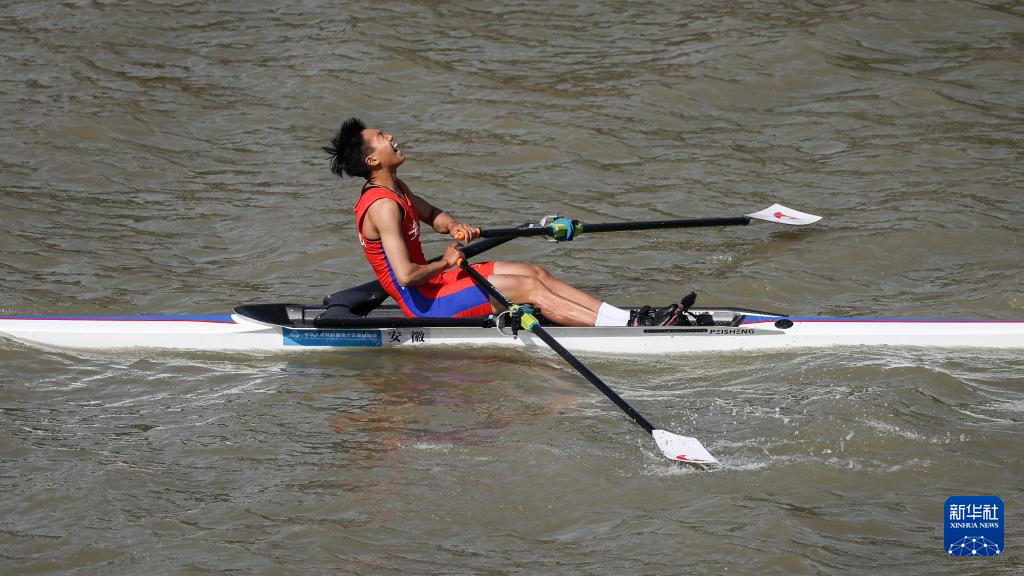 当日,第十五届全国运动会赛艇项目女子轻量级单人双桨决赛在广州举行。