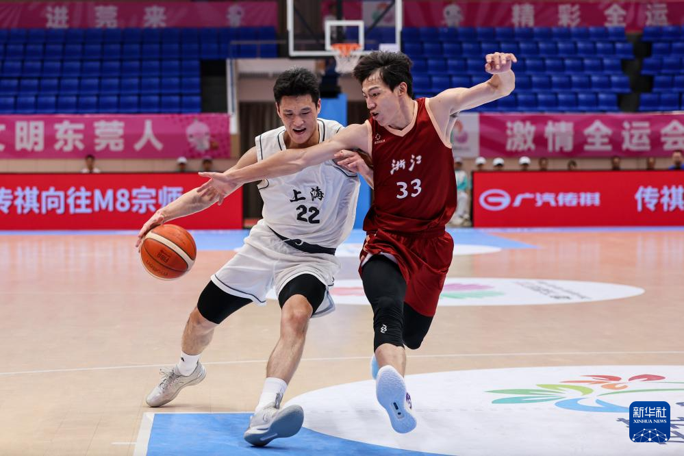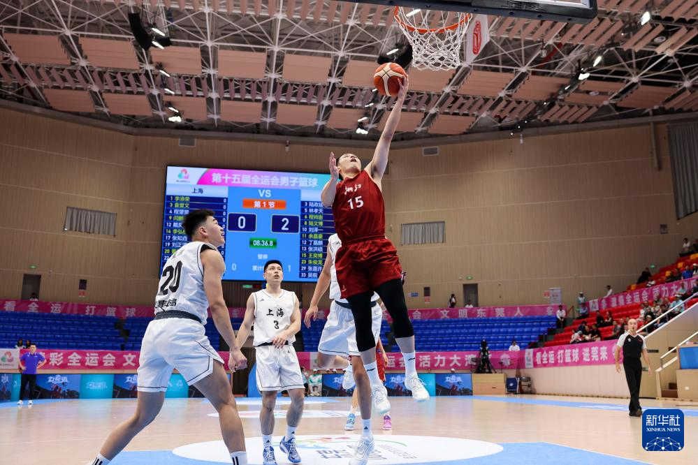当日,在广东省东莞市举行的第十五届全国运动会篮球男子成年组四分之一决赛中,浙江队58比52战胜上海队,晋级四强。