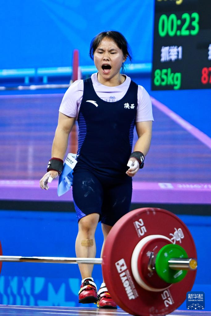 11月10日,陕西队选手陈雅柔在挺举比赛中。