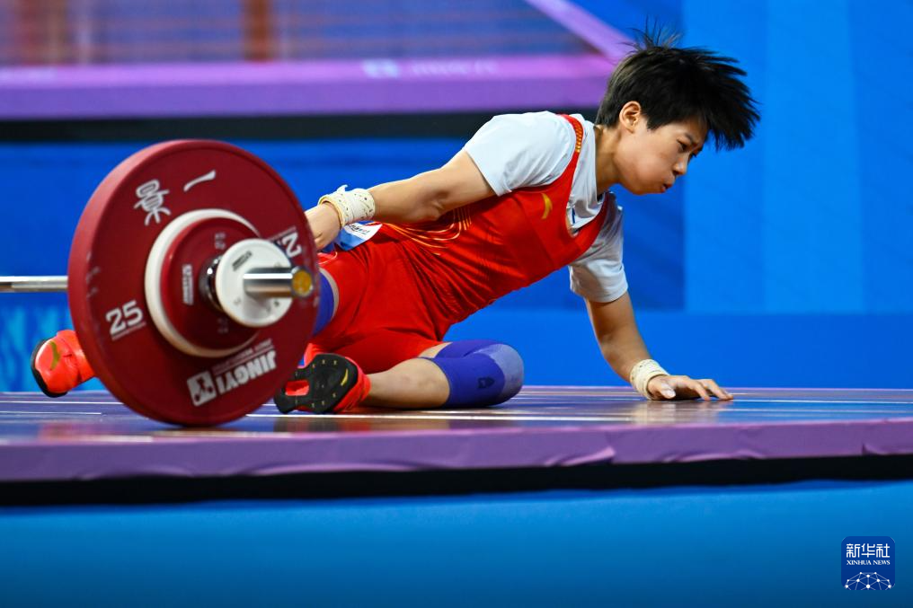 11月10日,福建队选手徐璐莹在抓举比赛中试举失败。