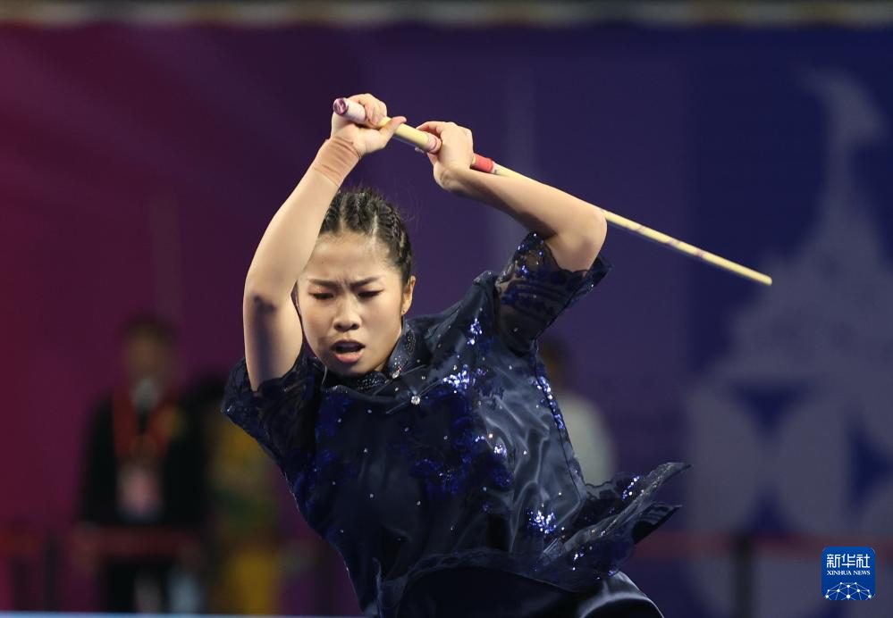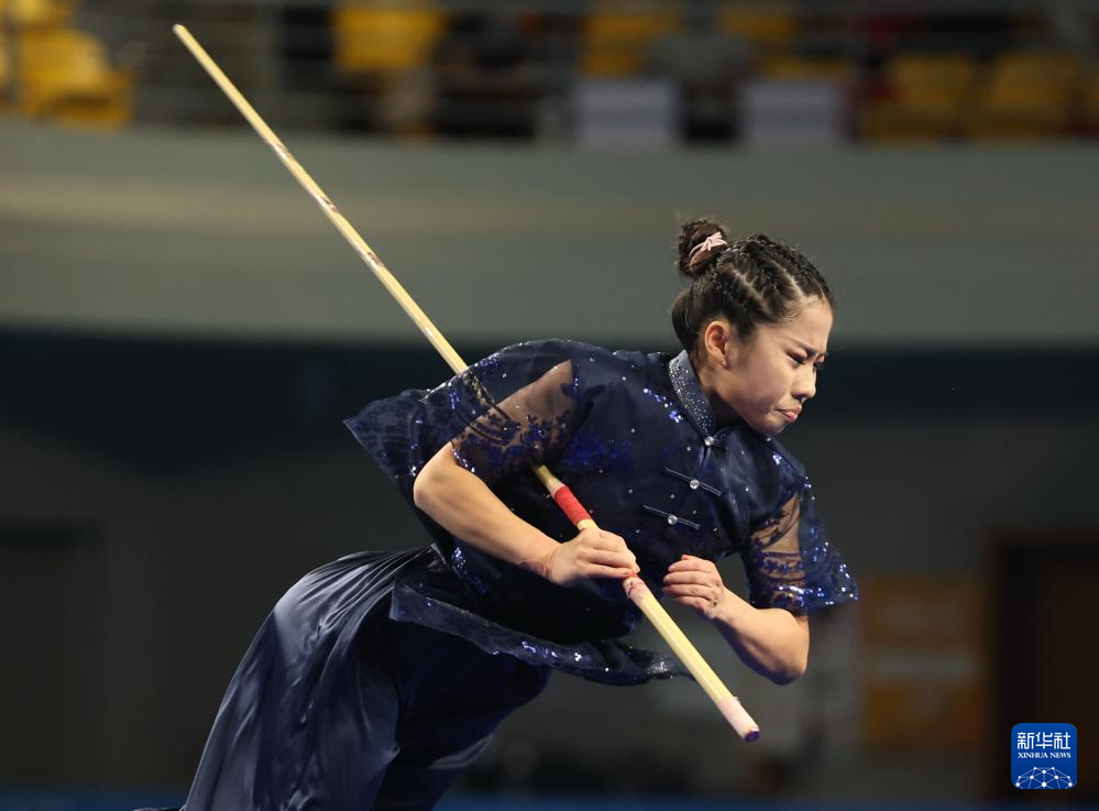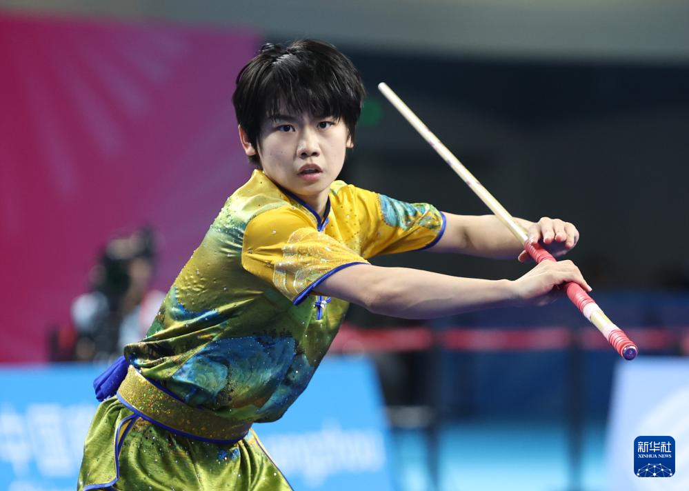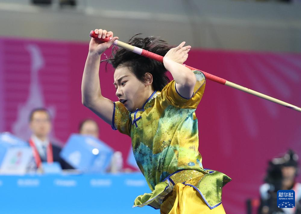 11月10日,山东队选手韩雪诗在团体赛女子棍术比赛中。最终,山东队夺得金牌。