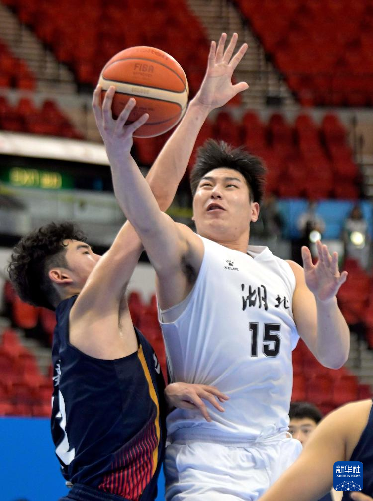 11月10日,湖北队球员宋宇卓(右)在比赛中上篮。
