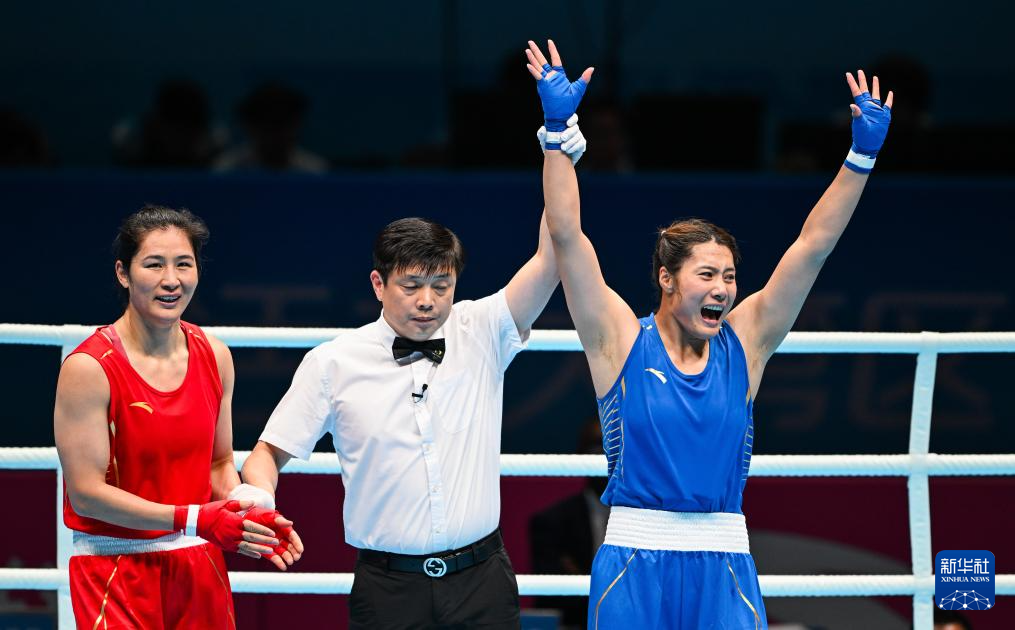 当日,在深圳进行的第十五届全国运动会拳击女子75公斤级四分之一决赛中,黑龙江队选手汪丽娜战胜内蒙古队选手李倩,晋级半决赛。