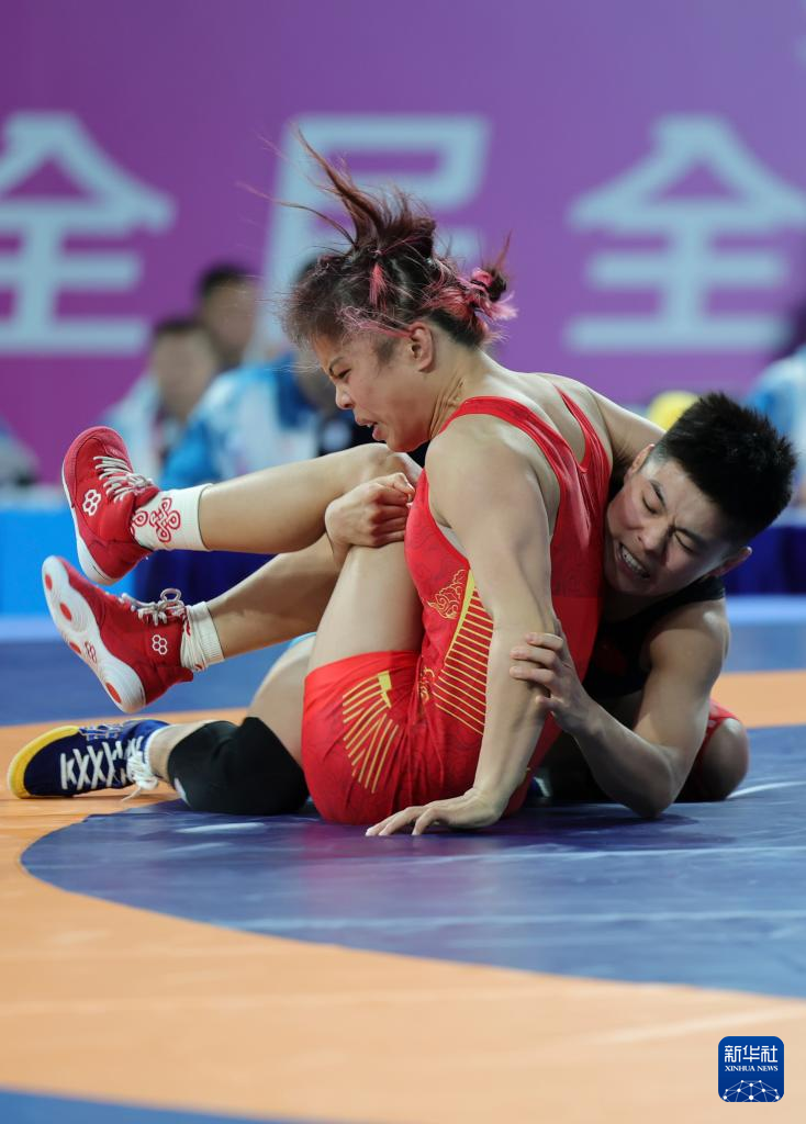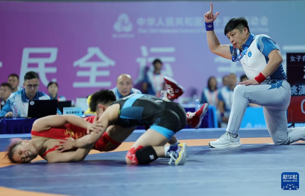 当日,第十五届全国运动会摔跤女子自由式50公斤级半决赛在清远举行。