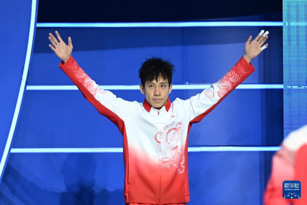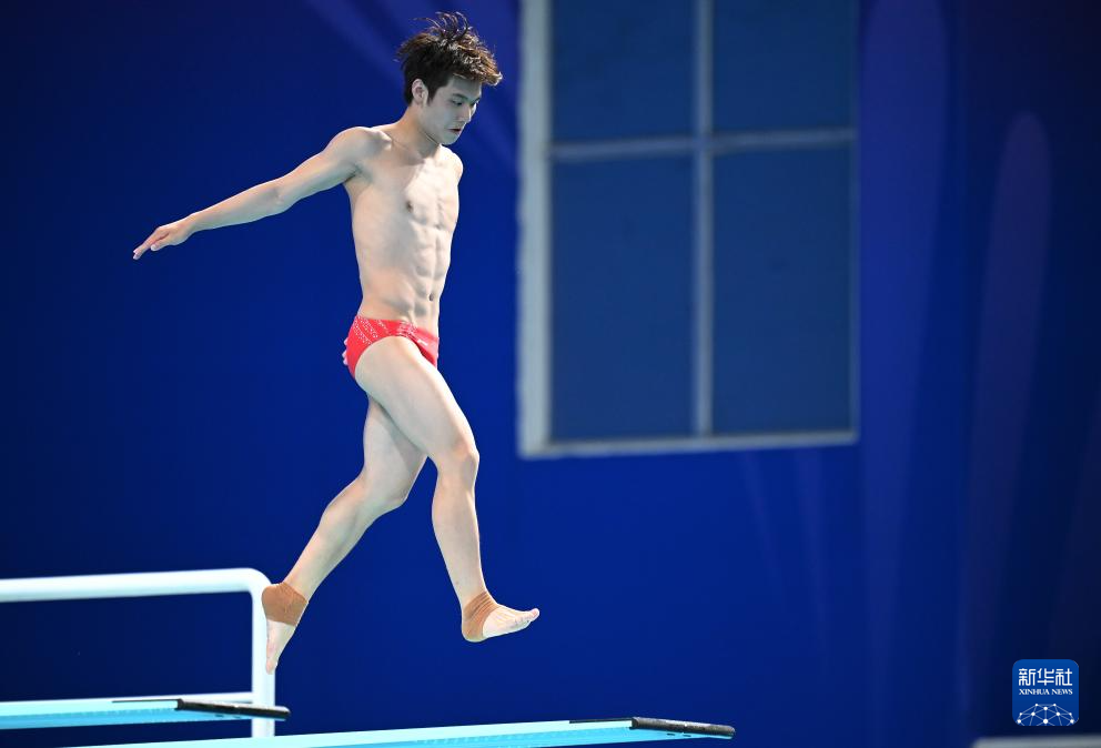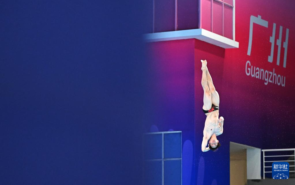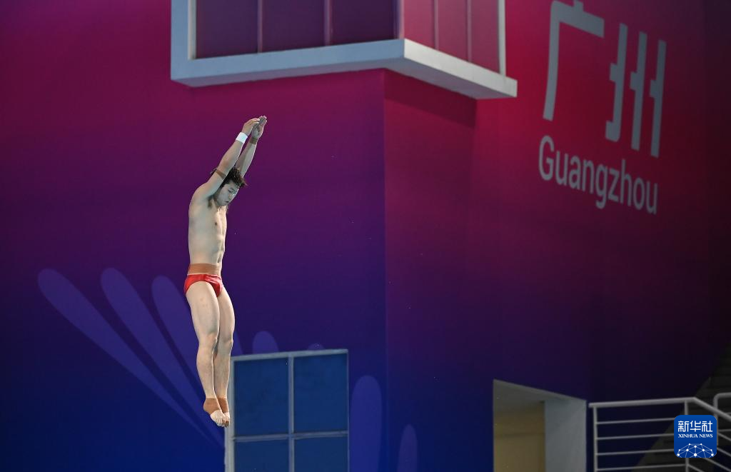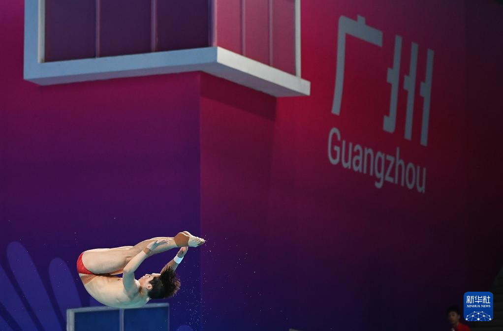 当日,第十五届全国运动会跳水男子3米跳板决赛在广州举行。