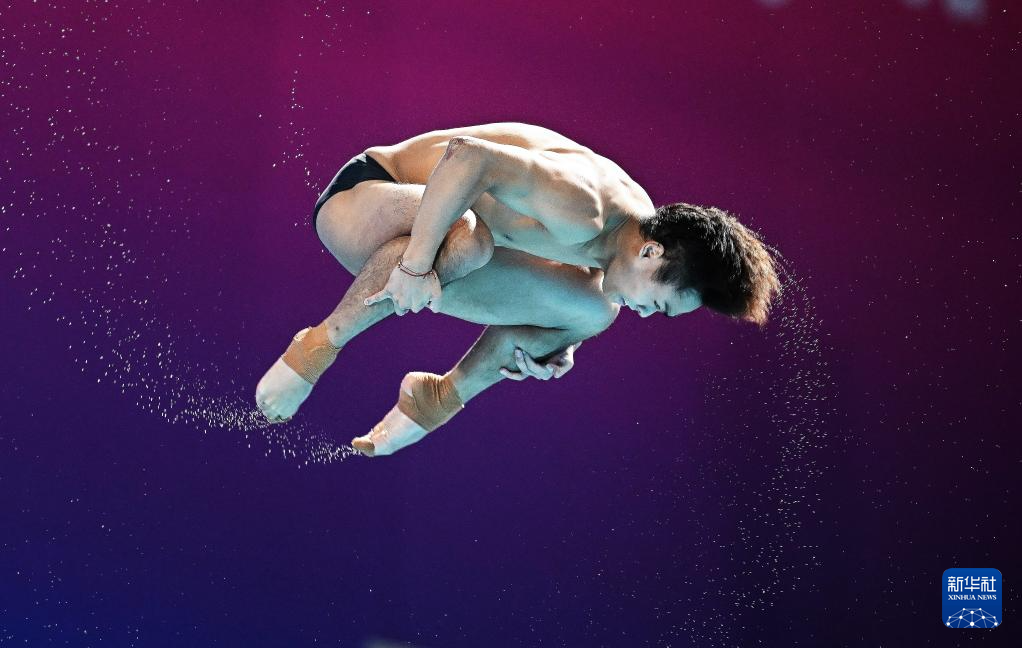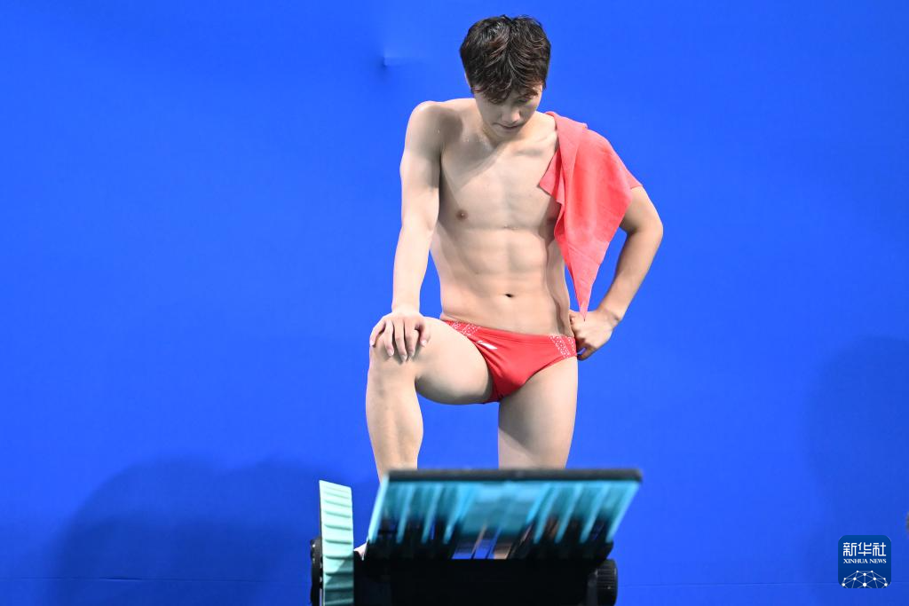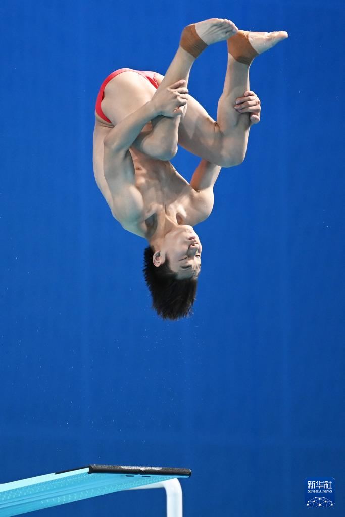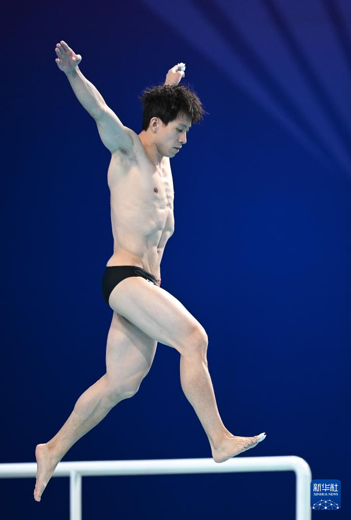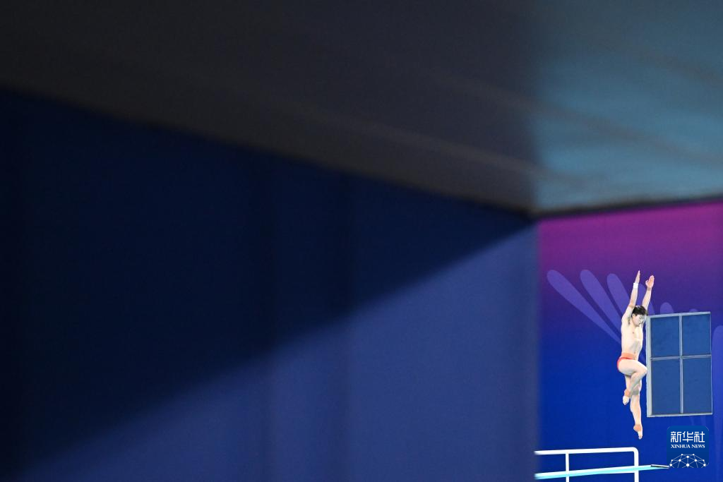 11月10日,湖北队选手王宗源在比赛中完成动作后准备出水。