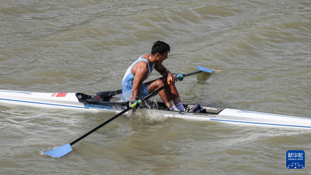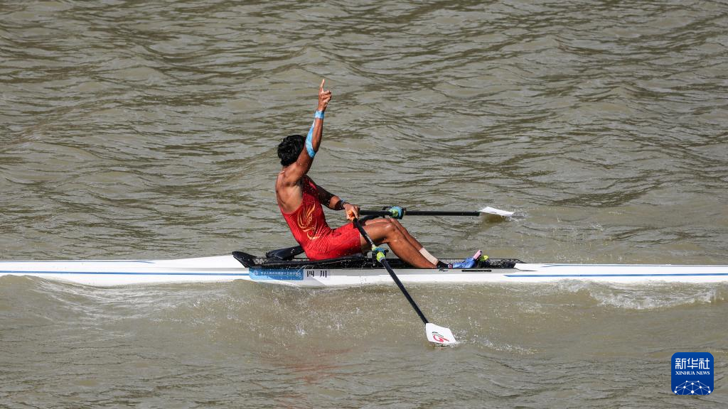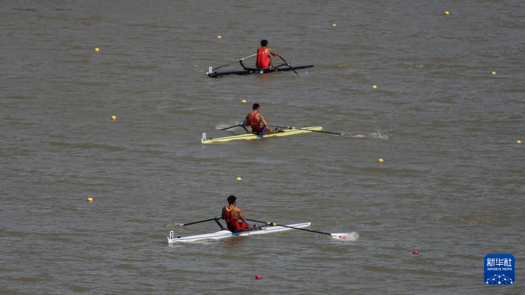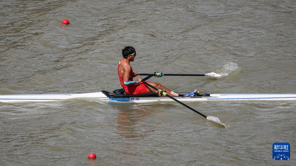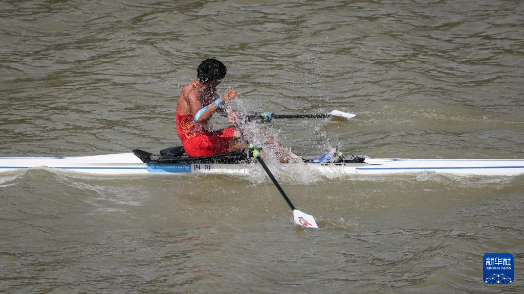 当日,第十五届全国运动会赛艇项目男子单人双桨决赛在广州举行。