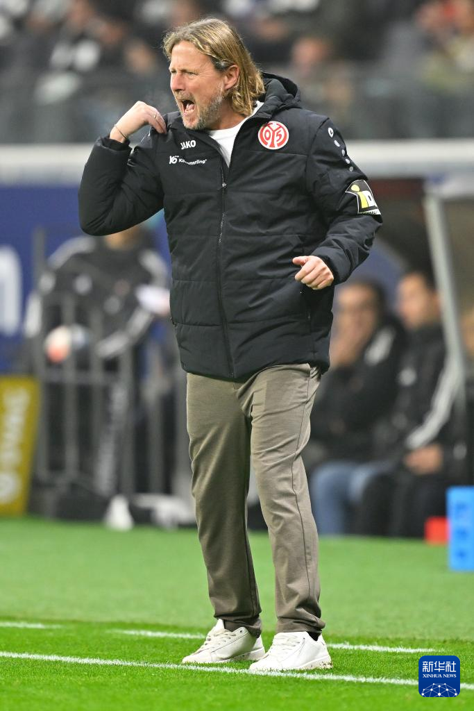 11月9日,美因茨队主教练亨里克森在场边指挥。