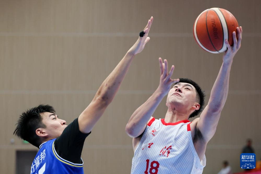11月10日,江苏队球员蒋浩然(左)在比赛中上篮。