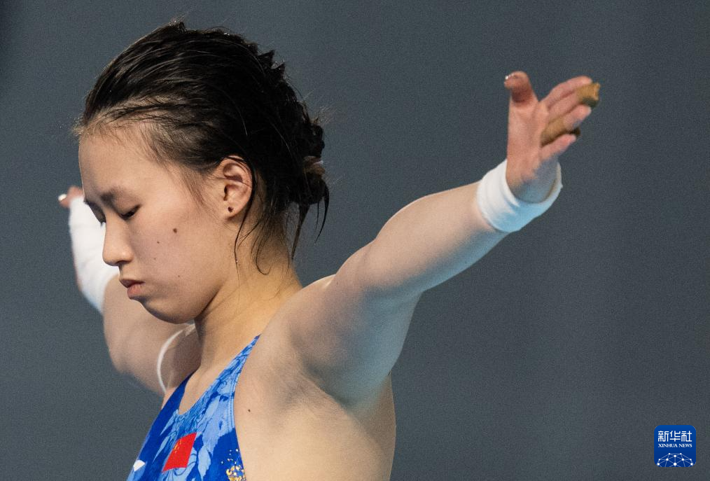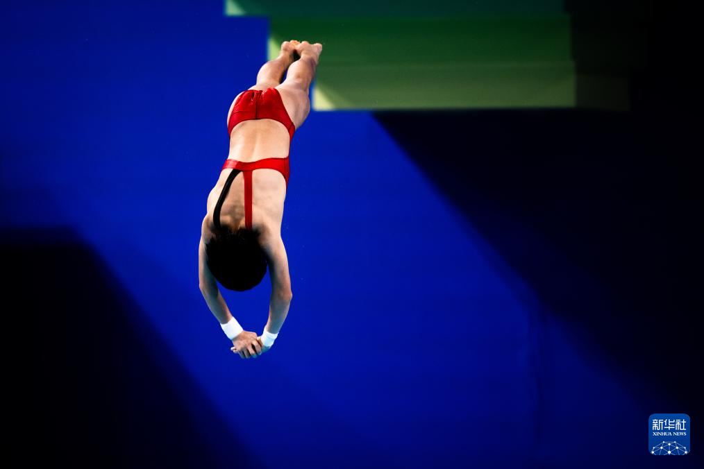 11月10日,上海队选手陈芋汐在完成动作后。
