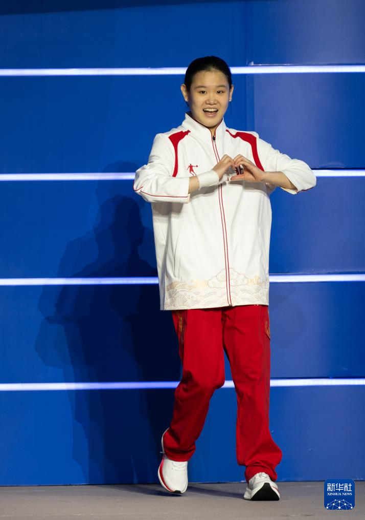 11月10日,获得冠军的上海队选手陈芋汐在颁奖仪式上。