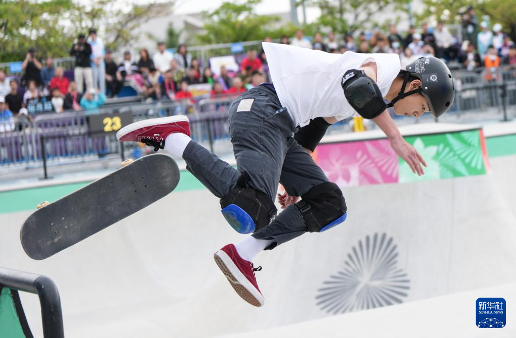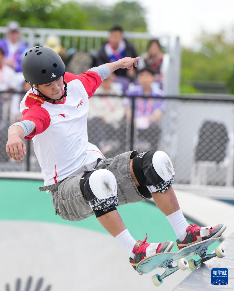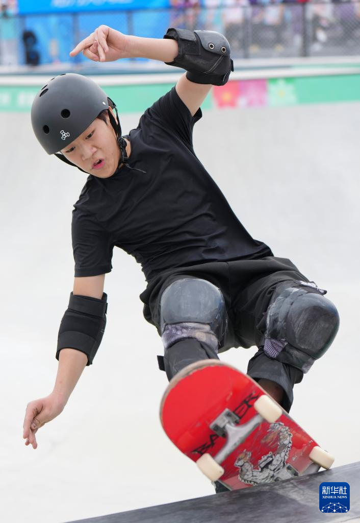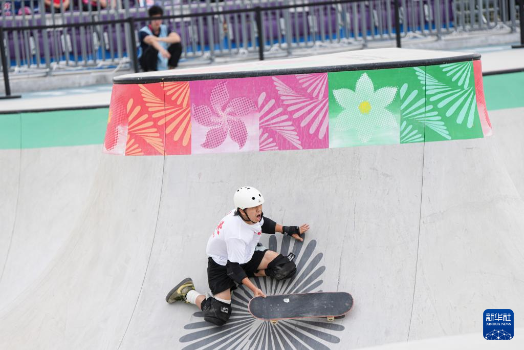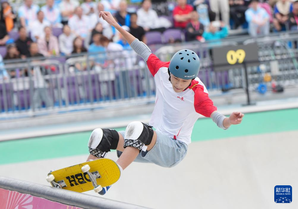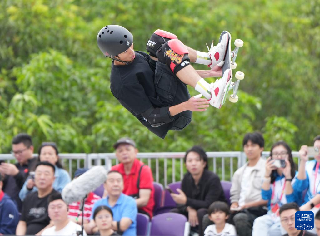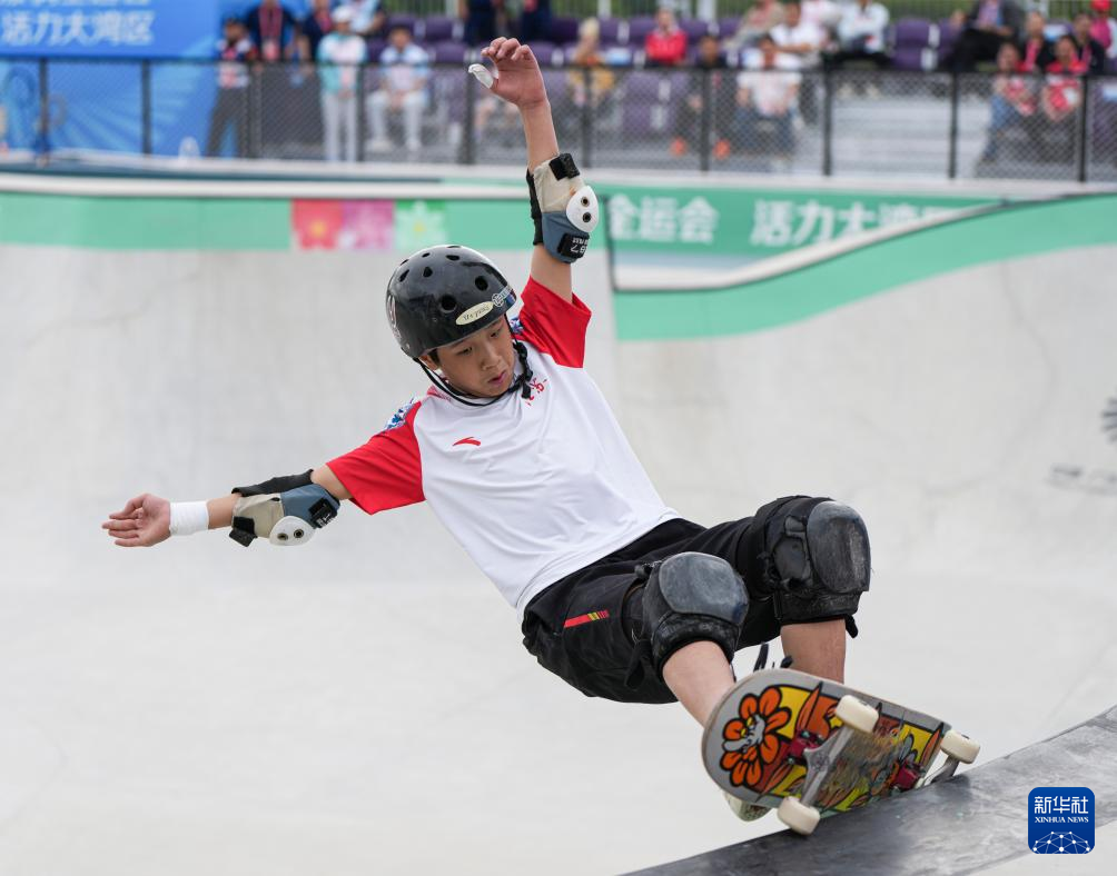 当日,第十五届全国运动会滑板男子碗池赛半决赛在广东惠州举行。