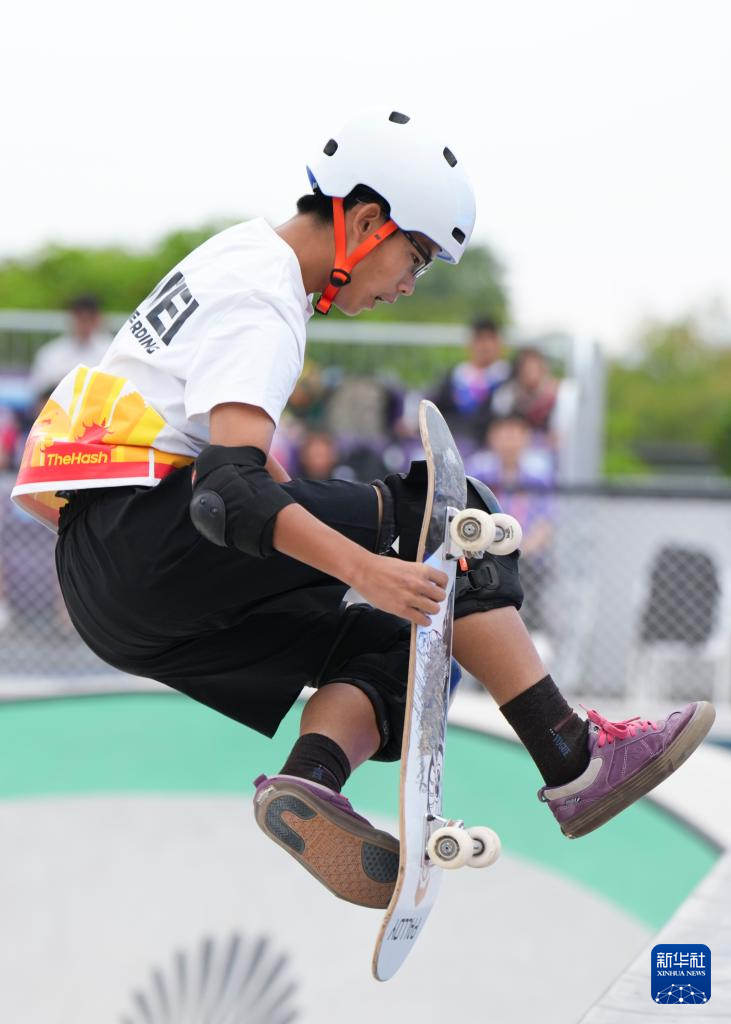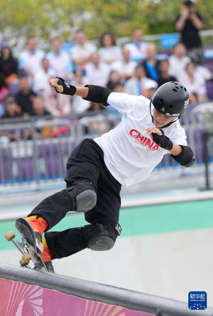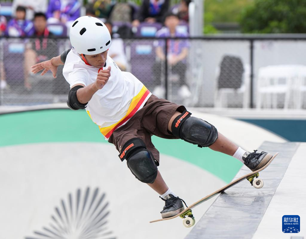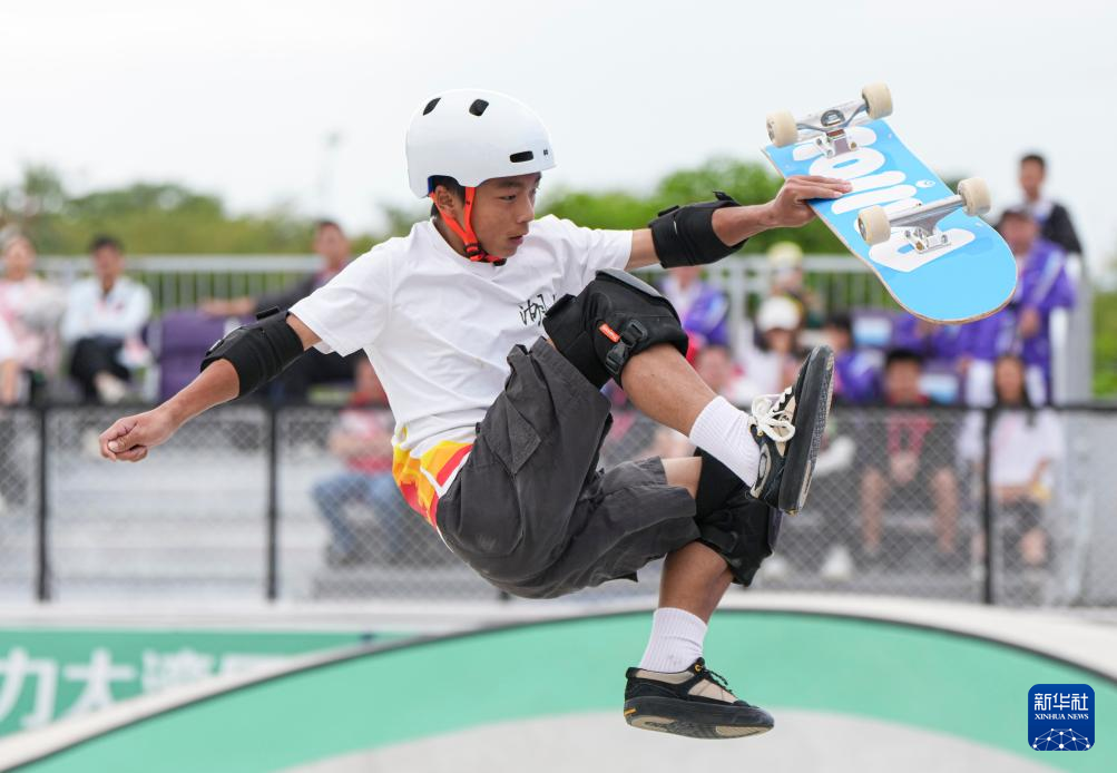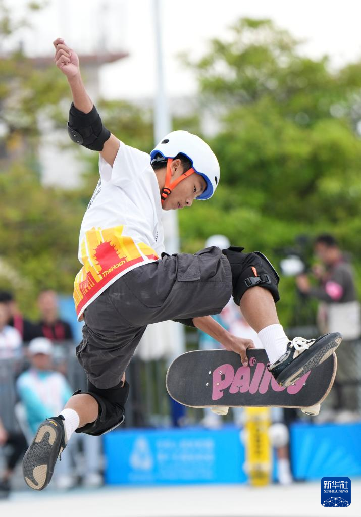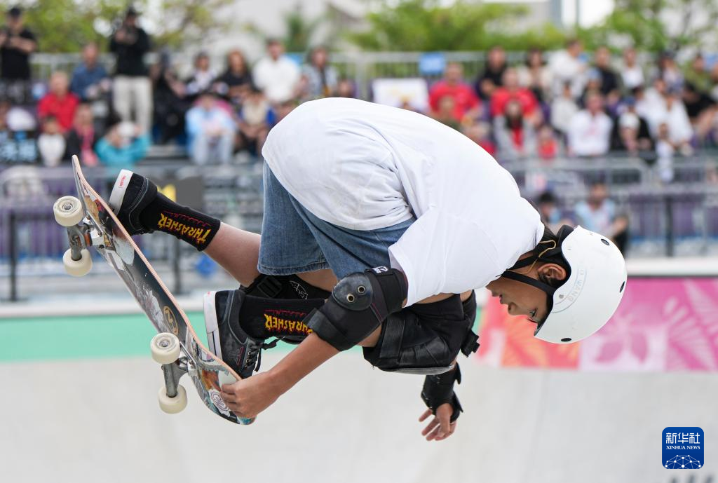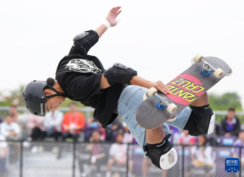 当日,第十五届全国运动会滑板男子碗池赛半决赛在广东惠州举行。