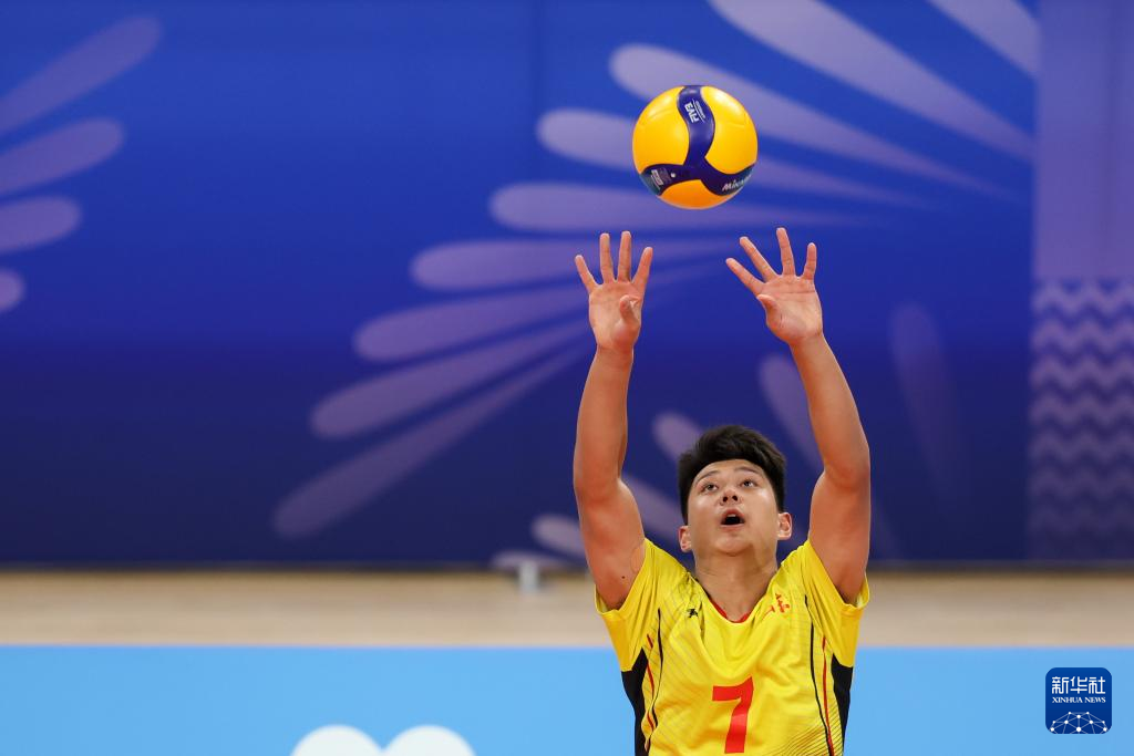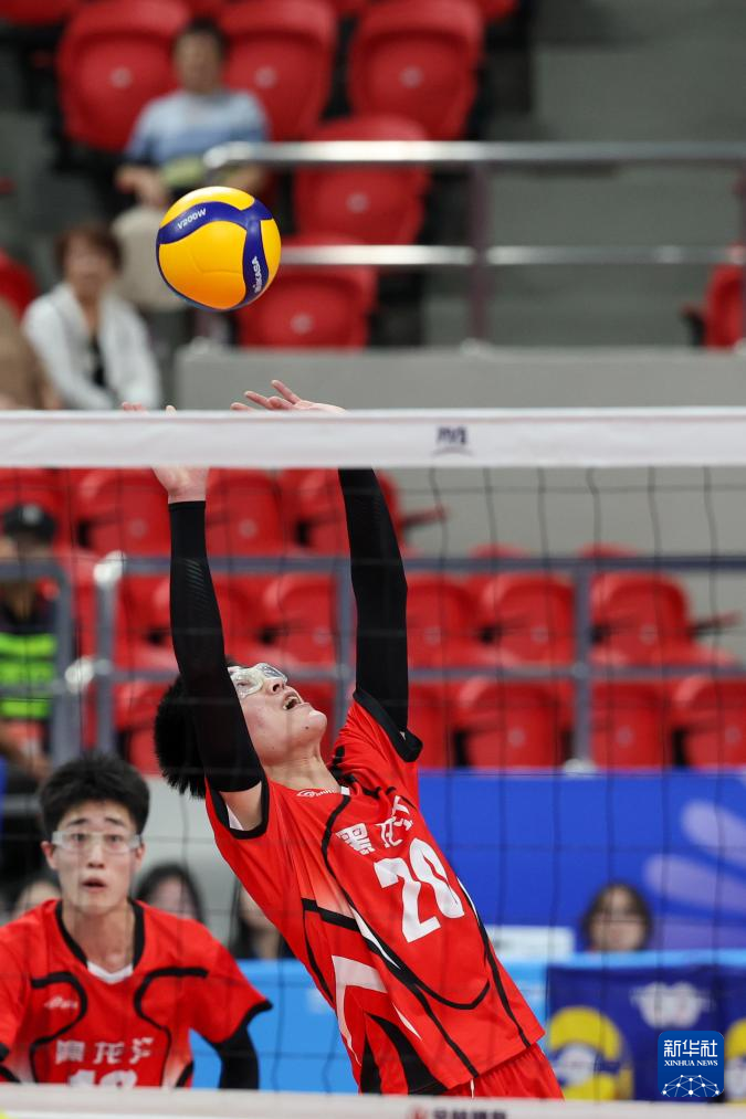 11月10日,山东队球员宫浩乾在比赛中传球。