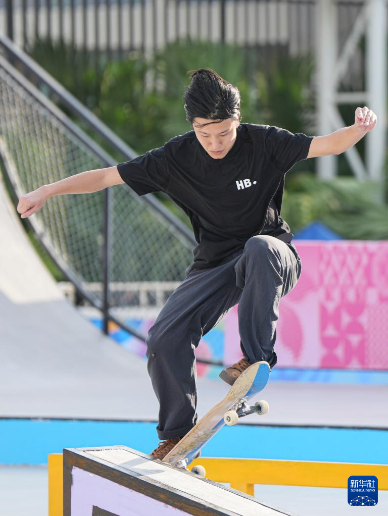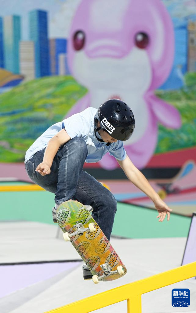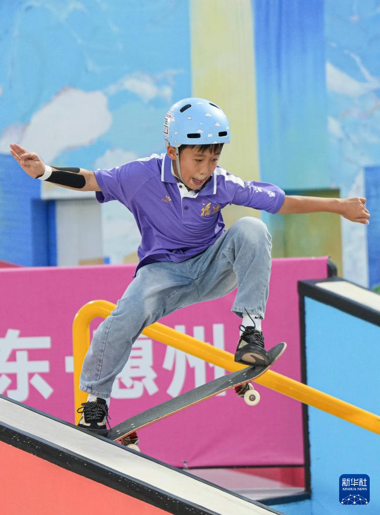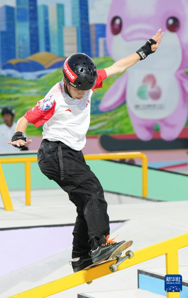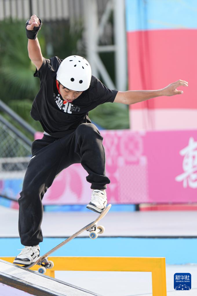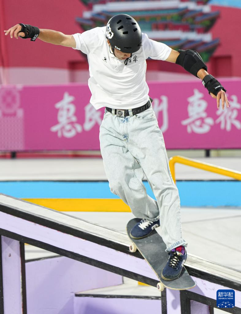 当日,第十五届全国运动会滑板男子街式赛半决赛在惠州举行。