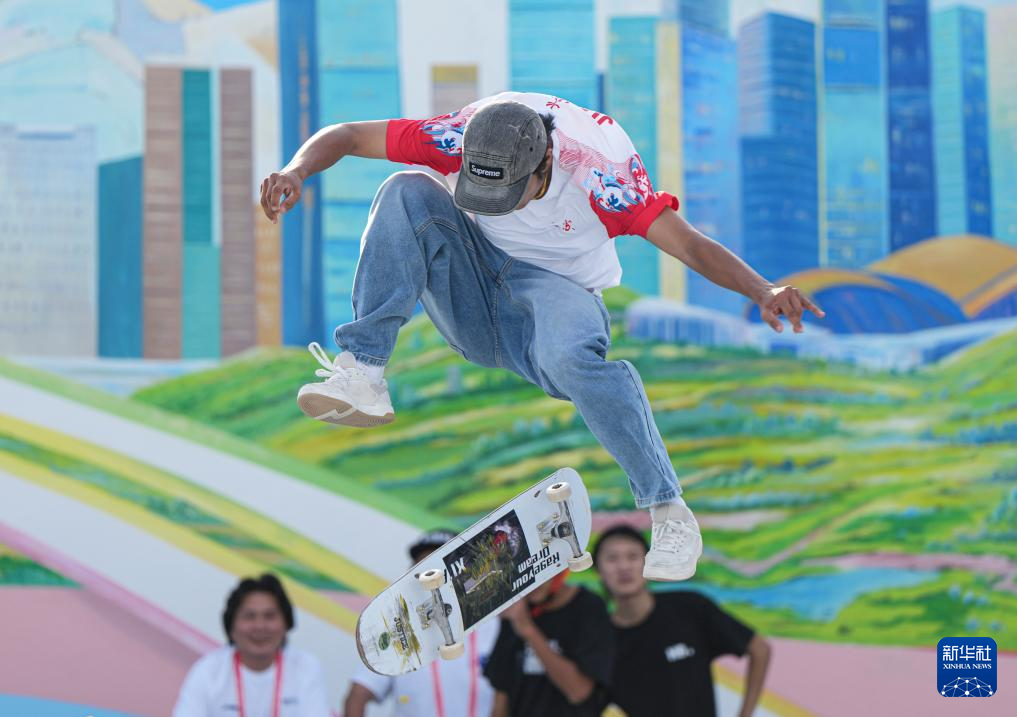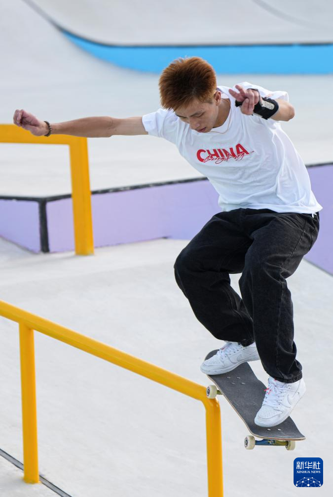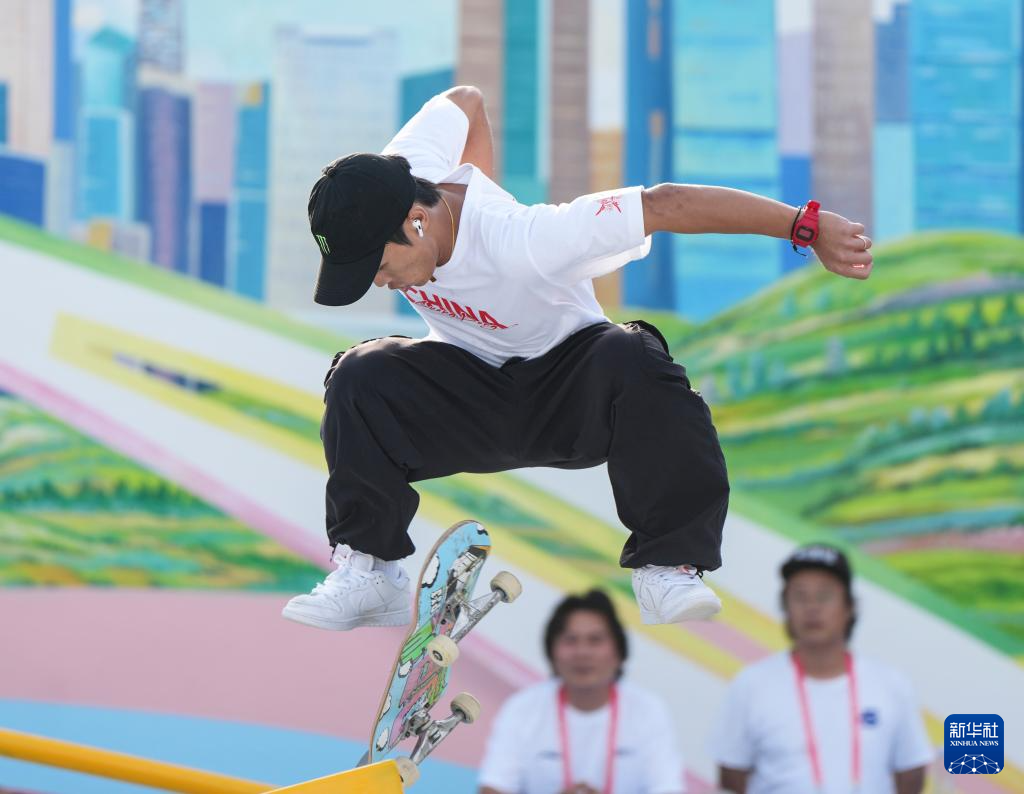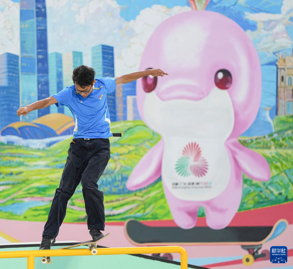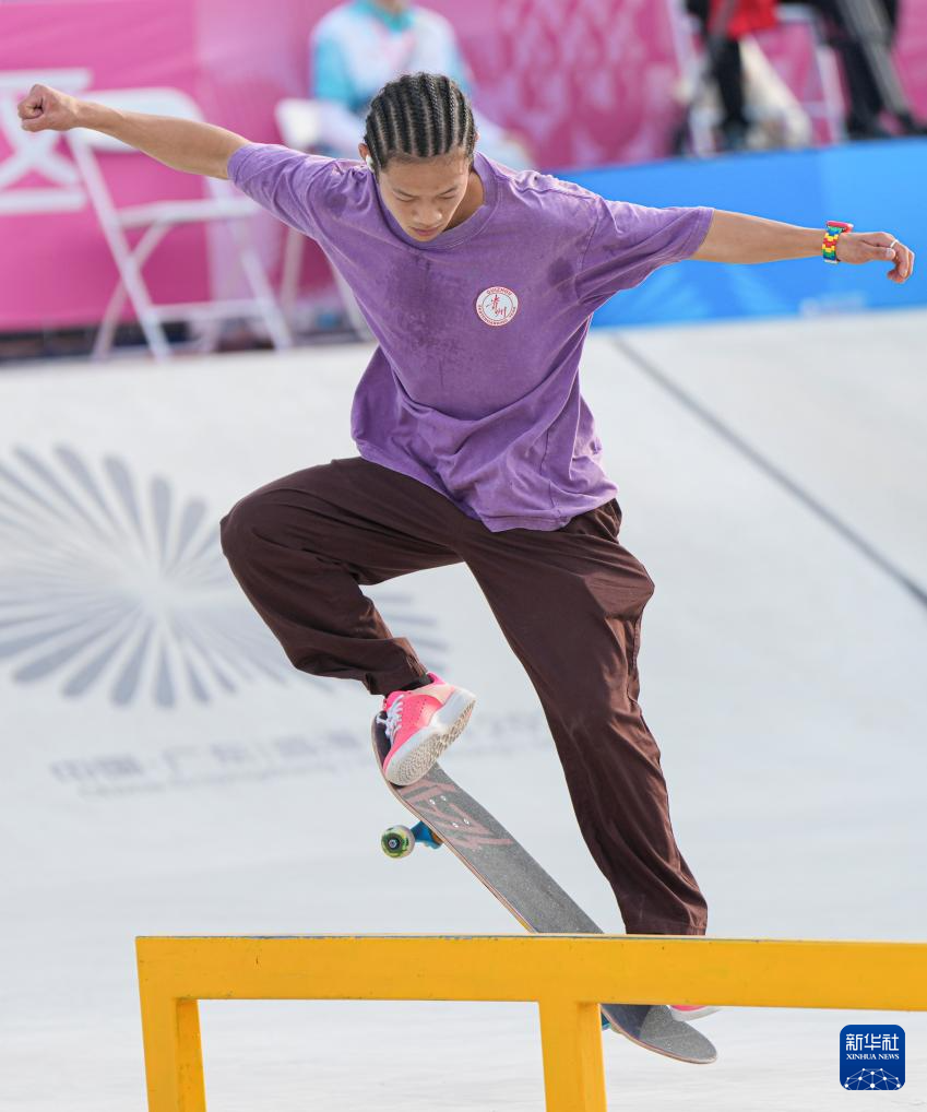当日,第十五届全国运动会滑板男子街式赛半决赛在惠州举行。
