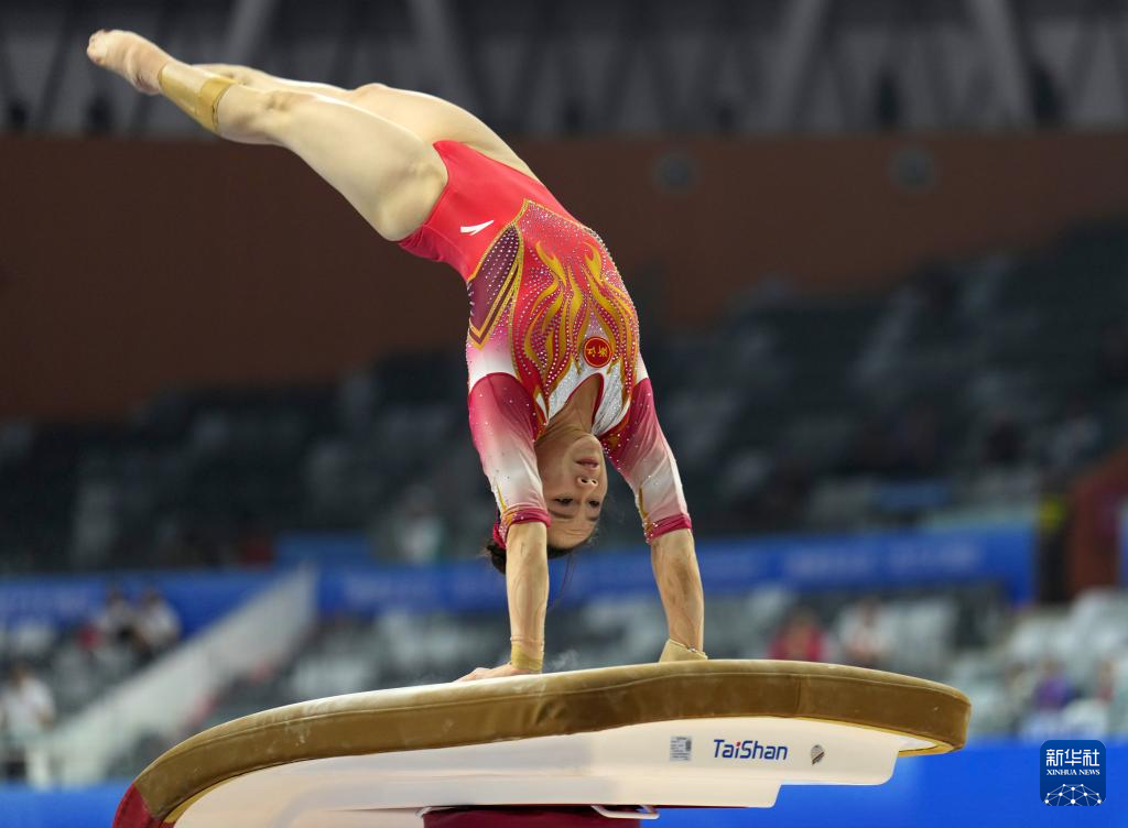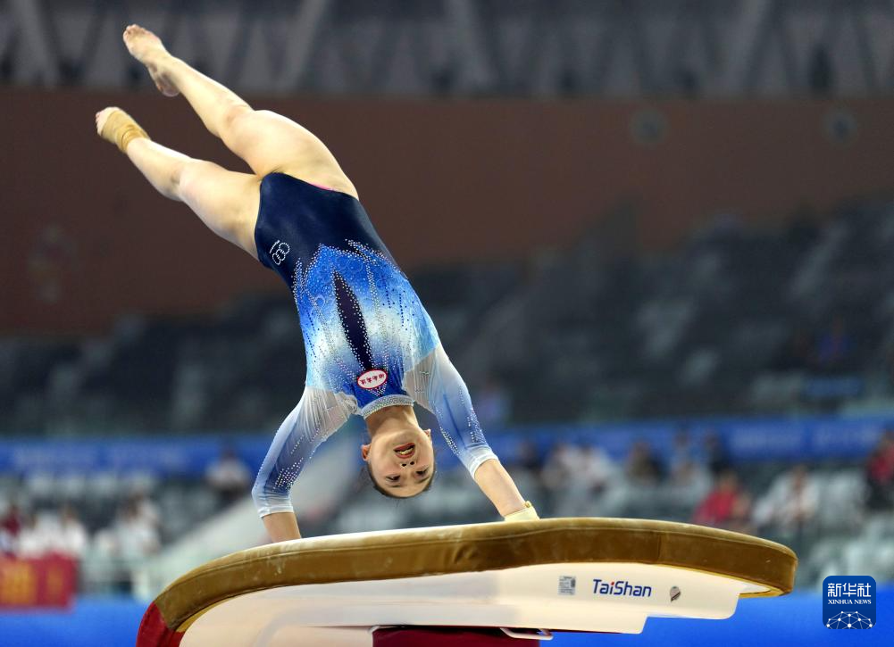11月11日,湖南队选手王莹莹在跳马比赛中。