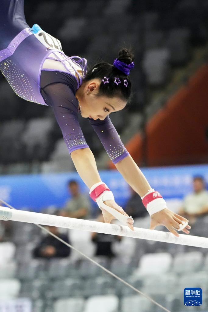 11月11日,云南队选手杨凡予微在高低杠比赛中。