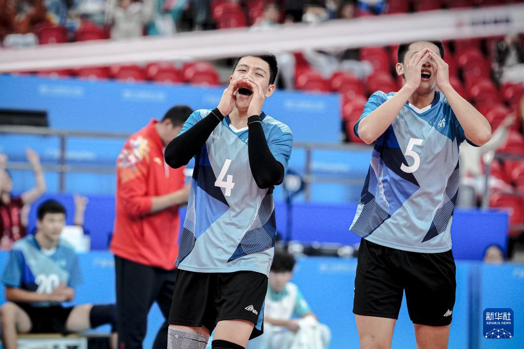 11月11日,江苏队球员魏凡博(左)、刘家诚在比赛中庆祝得分。