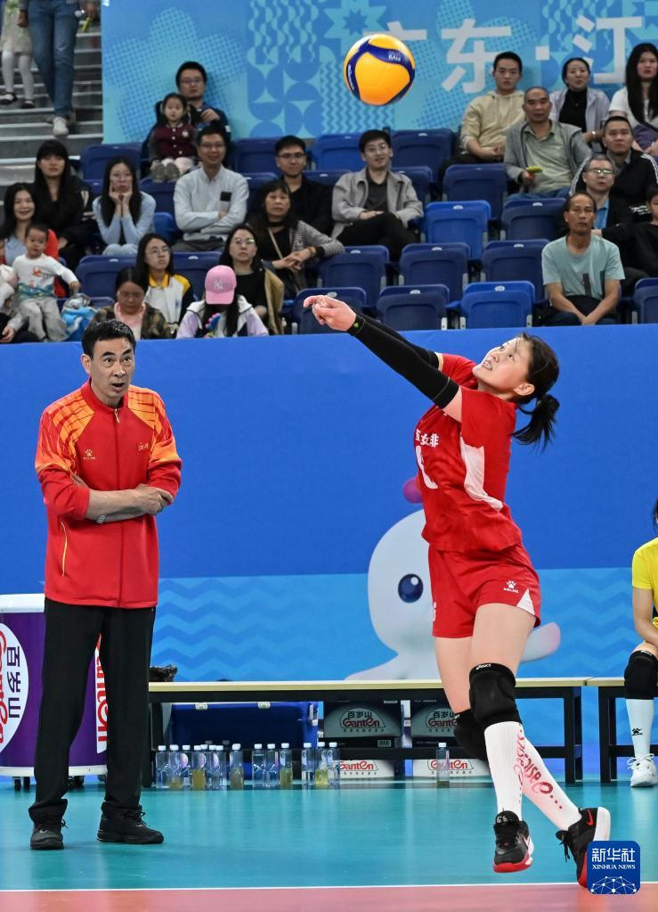 当日,在江门进行的第十五届全国运动会排球女子20岁以下组小组赛A组比赛中,上海队3比0战胜江西队。