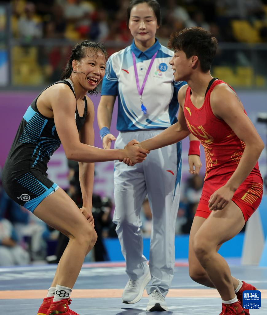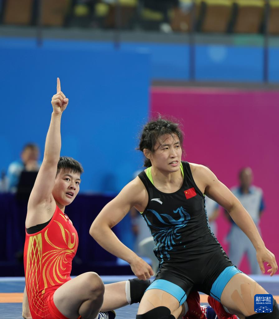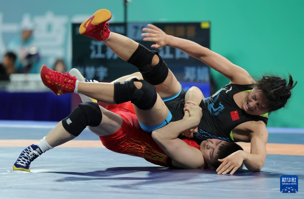 当日,第十五届全国运动会摔跤女子自由式57公斤级铜牌赛和决赛在广东清远举行。