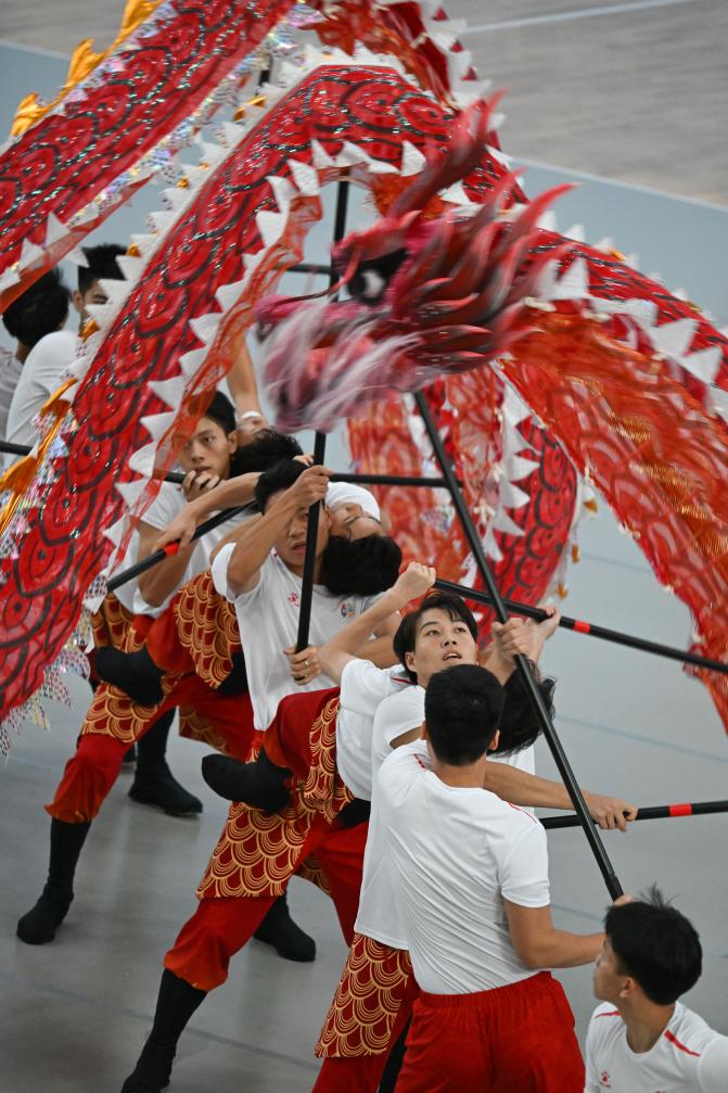 11月10日,香港队在广东省佛山市岭南明珠体育馆进行舞龙自选项目的适应场地训练。新华社记者 邹竞一 摄