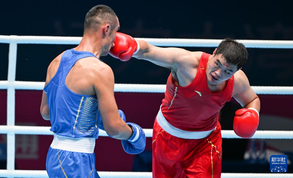 当日,在深圳进行的第十五届全国运动会拳击男子92公斤以上级半决赛中,广东队选手巴依克吾孜·达那别克战胜山东体育学院队选手赵龙凯,晋级决赛。