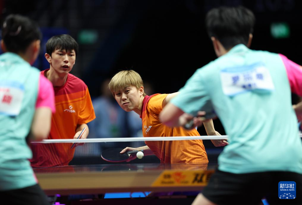 11月11日,四川队组合夏志芃(左一)/高雨欣(右二)在比赛中回球。