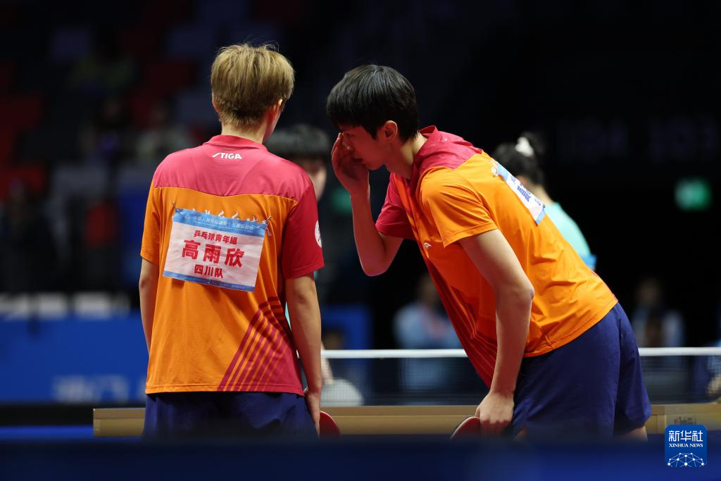 当日,在澳门进行的第十五届全国运动会乒乓球18岁以下混合双打金牌赛中,四川队组合夏志芃/高雨欣4比1战胜福建队组合罗杰乘/姚梓旋,夺得冠军。