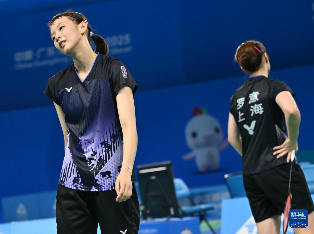 11月11日,上海队组合罗意(左)/廖立曦在女双比赛中。她们0比2不敌广东队组合李怡婧/罗徐敏。