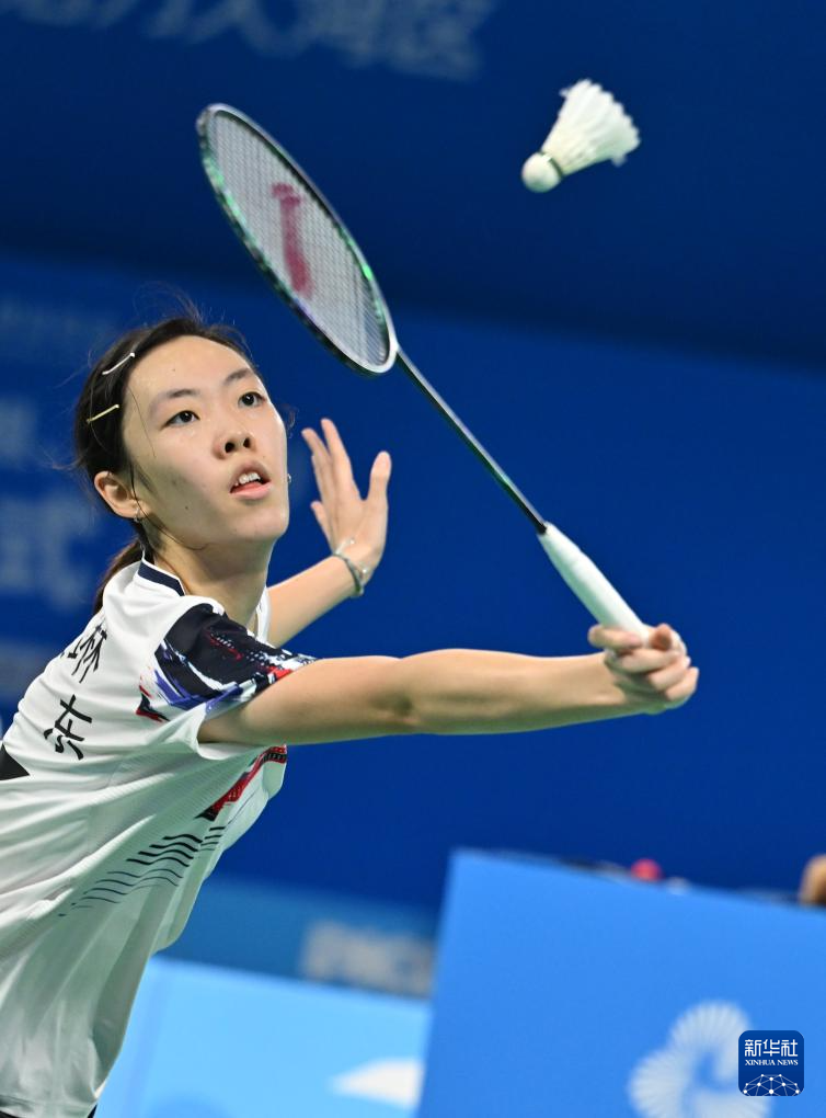 当日,在深圳进行的第十五届全国运动会羽毛球女子团体小组赛F组比赛中,广东队3比1战胜上海队。