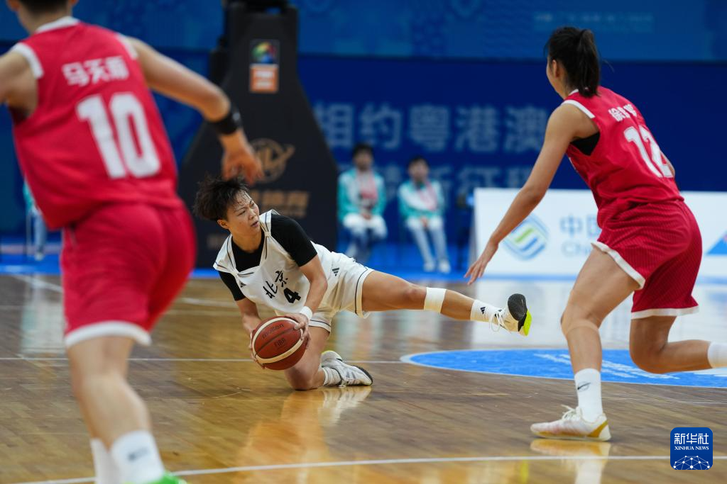 11月11日,北京队球员王雨桐(中)在比赛中带球突破。