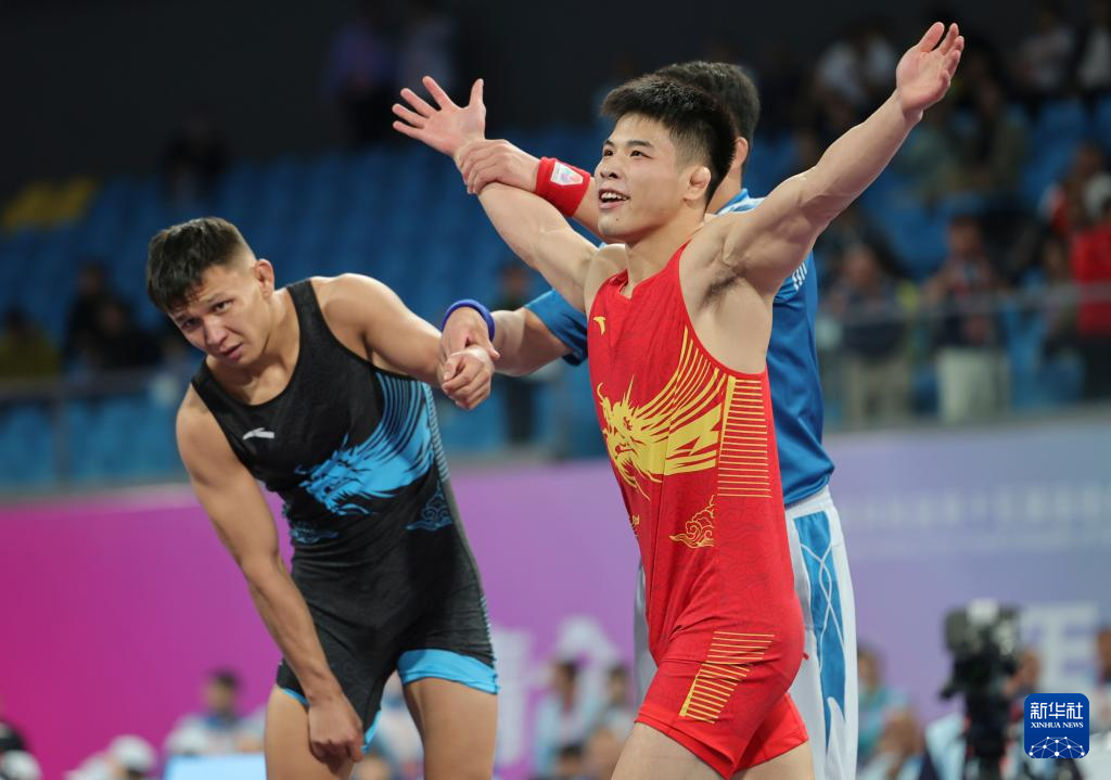 当日,第十五届全国运动会摔跤男子自由式74公斤级比赛在广东清远举行。