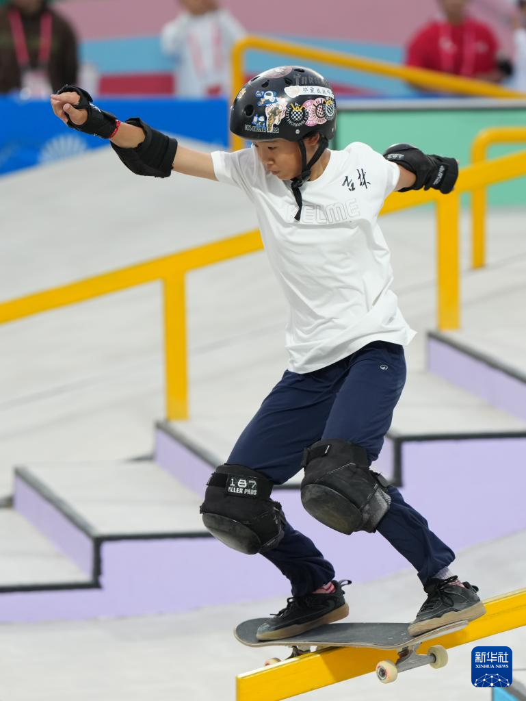 当日,第十五届全国运动会滑板项目女子街式赛决赛在广东惠州举行。